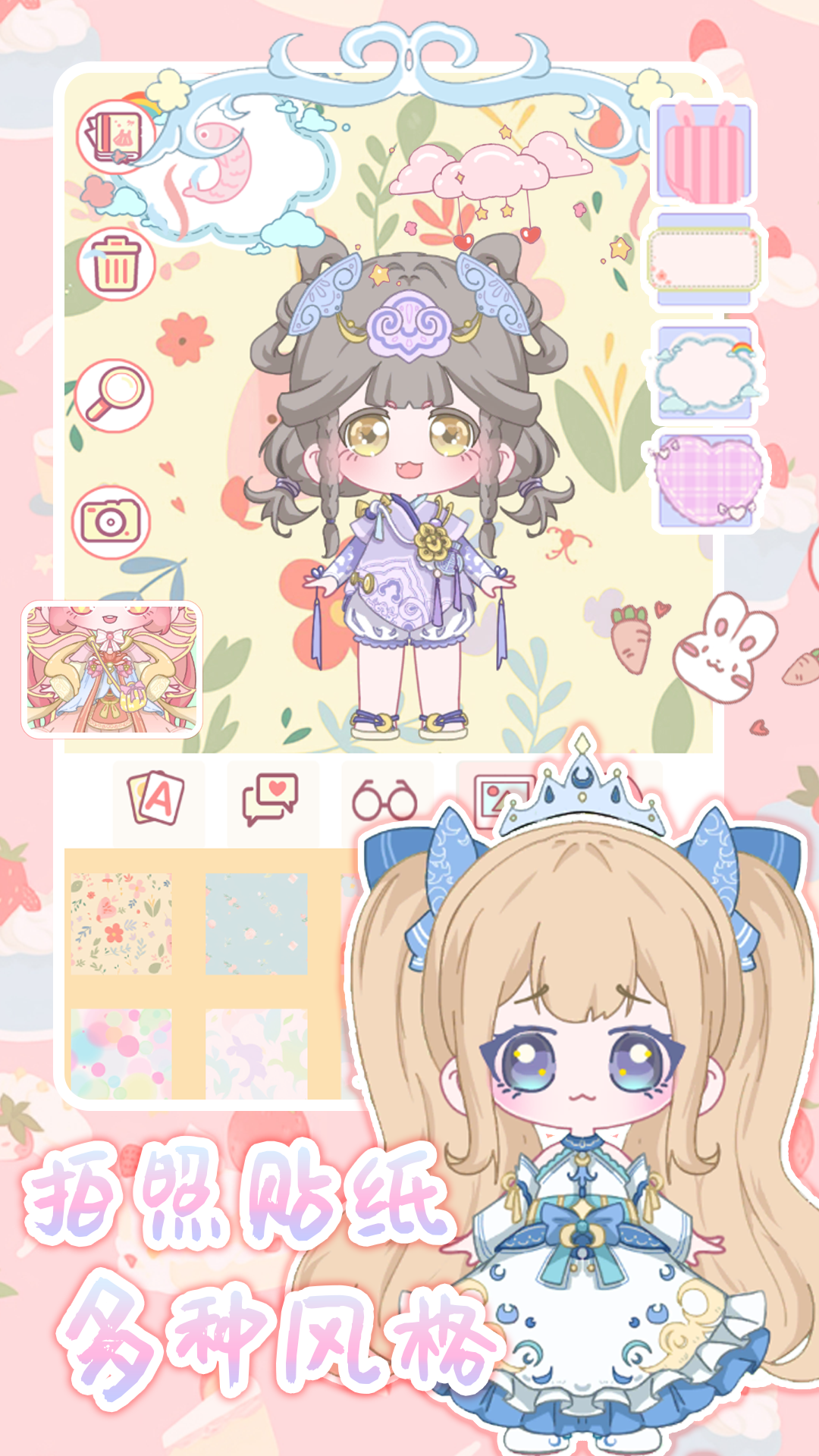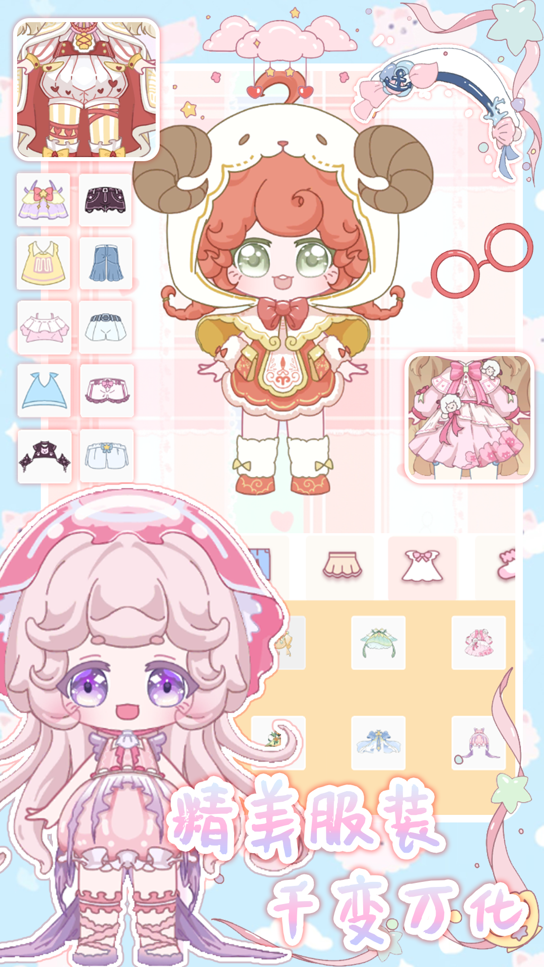 你可以选择卡哇伊洛丽塔裙、华丽公主裙、优雅长裙等海量服饰,还可以有意外收获:梦幻翅膀、特色贴纸等等小装饰也萌化你的心!