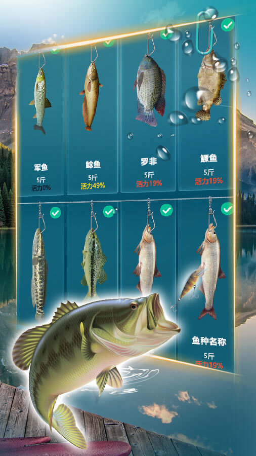 无论是鱼类的品质,还是山水的景色,都彰显出游戏的真实感。在游戏进程中,通过操作鱼饵的释放能够提高钓到稀有鱼种的概率,当鱼咬饵时就可以收线了。