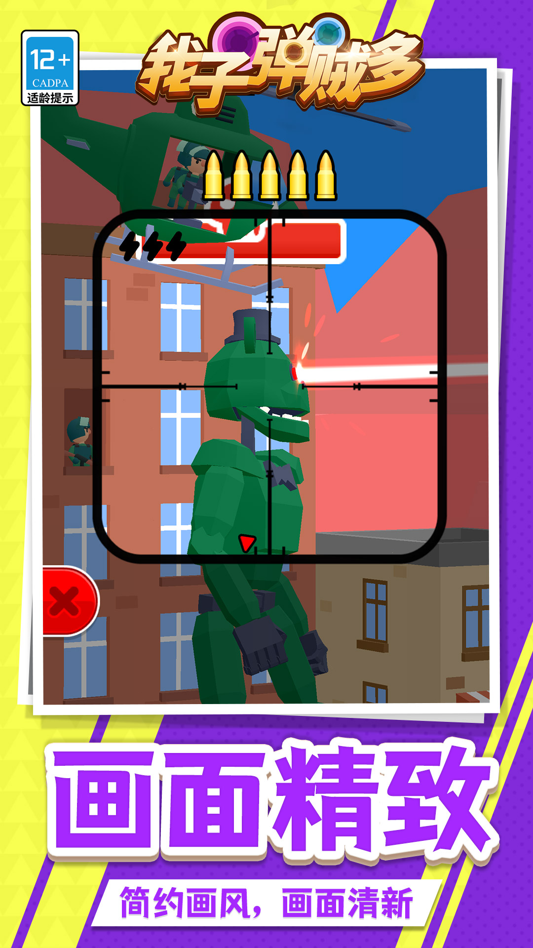 《我子弹贼多》是一款动作射击类休闲游戏。玩家伏击在山坡上,从掩体中准确射击敌人目标摧毁敌营,玩家通过修改装备和升级技能来提高装甲机器的作战能力。挑战强敌和艰巨任务,游戏中还会有多种地图等你来解锁,快来体验一下吧!