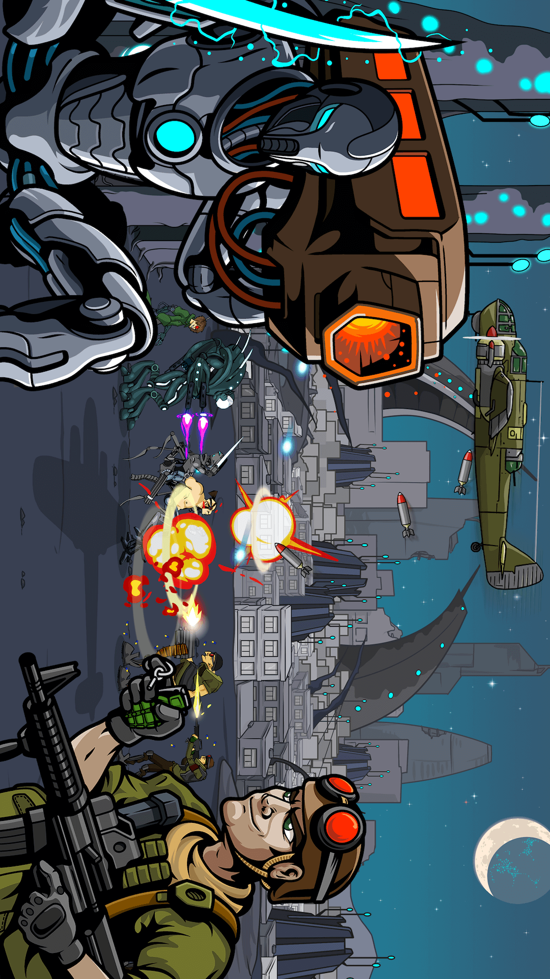 在充满战争的世界,你将扮演一名指挥官,不断的建造自己的军队,进攻敌人,更能收集资源让自己所处的时代进化,解锁全新的兵种。直到把敌方大本营摧毁后胜利,进入下一关。勇敢智慧的进行战斗,挑战关卡吧!