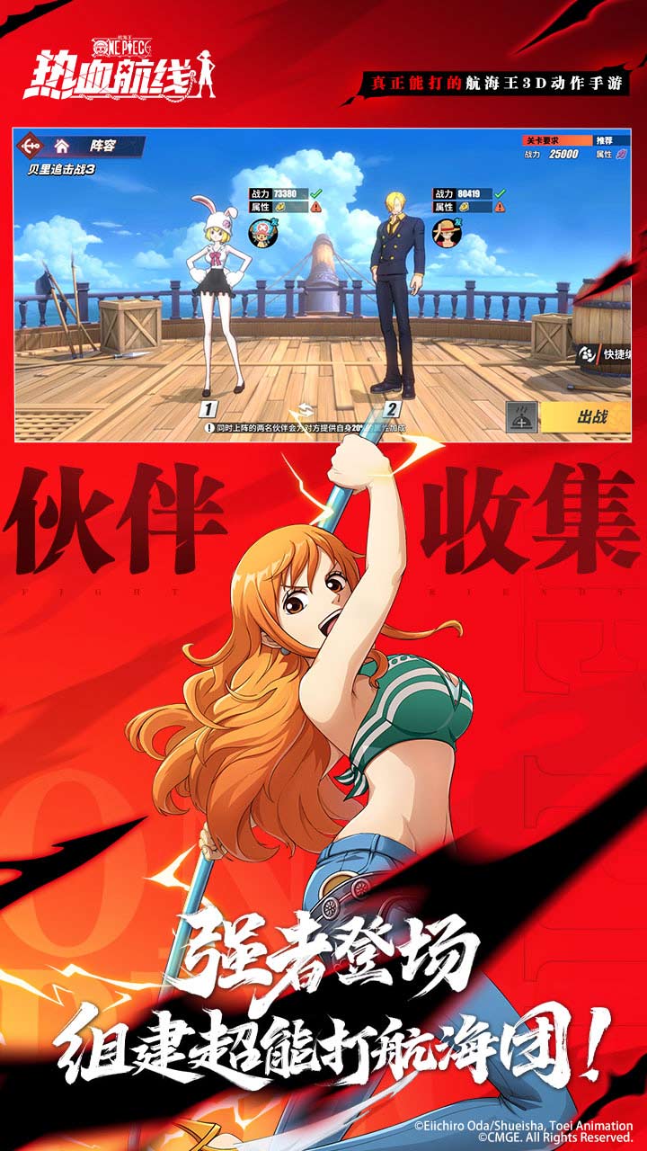 《航海王热血航线》是一款获得东映动画正版授权的航海王3D动作手游,众多海米都在玩呢!这款游戏致力于还原伙伴们的技能设定以及华丽的特效,为玩家送上畅快淋漓的动作游戏体验。在PVP竞技场可以尽情开打,全视角3D战斗让热血尽情燃烧。