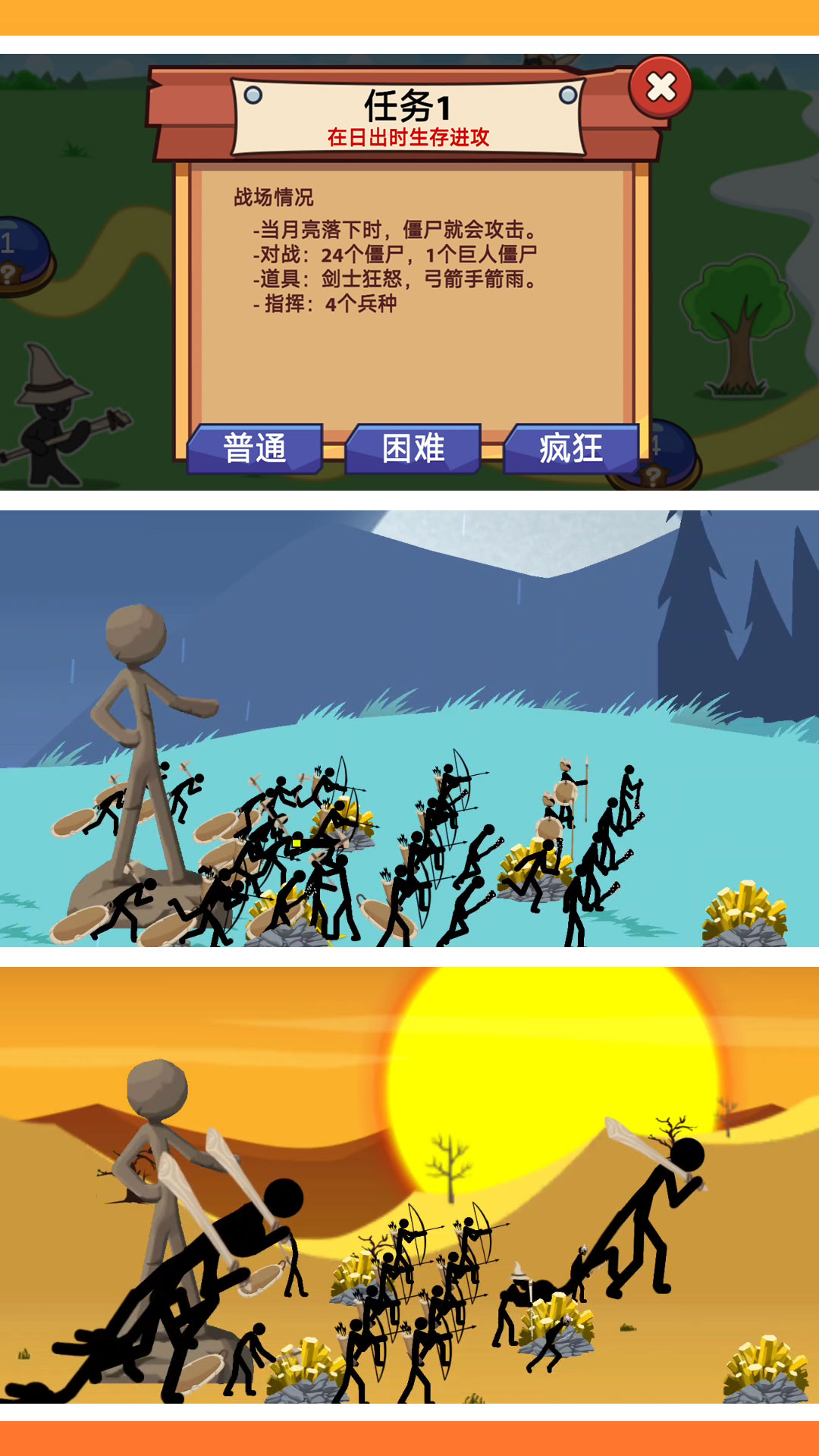 一款特别经典的火柴人冒险闯关手游,玩家将控制着一个火柴人去进行一系列的冒险,特别考验玩家的策略能力,你将召集大量的火柴人组成一支军队,从而抵抗外界的势力,不停的打败他们