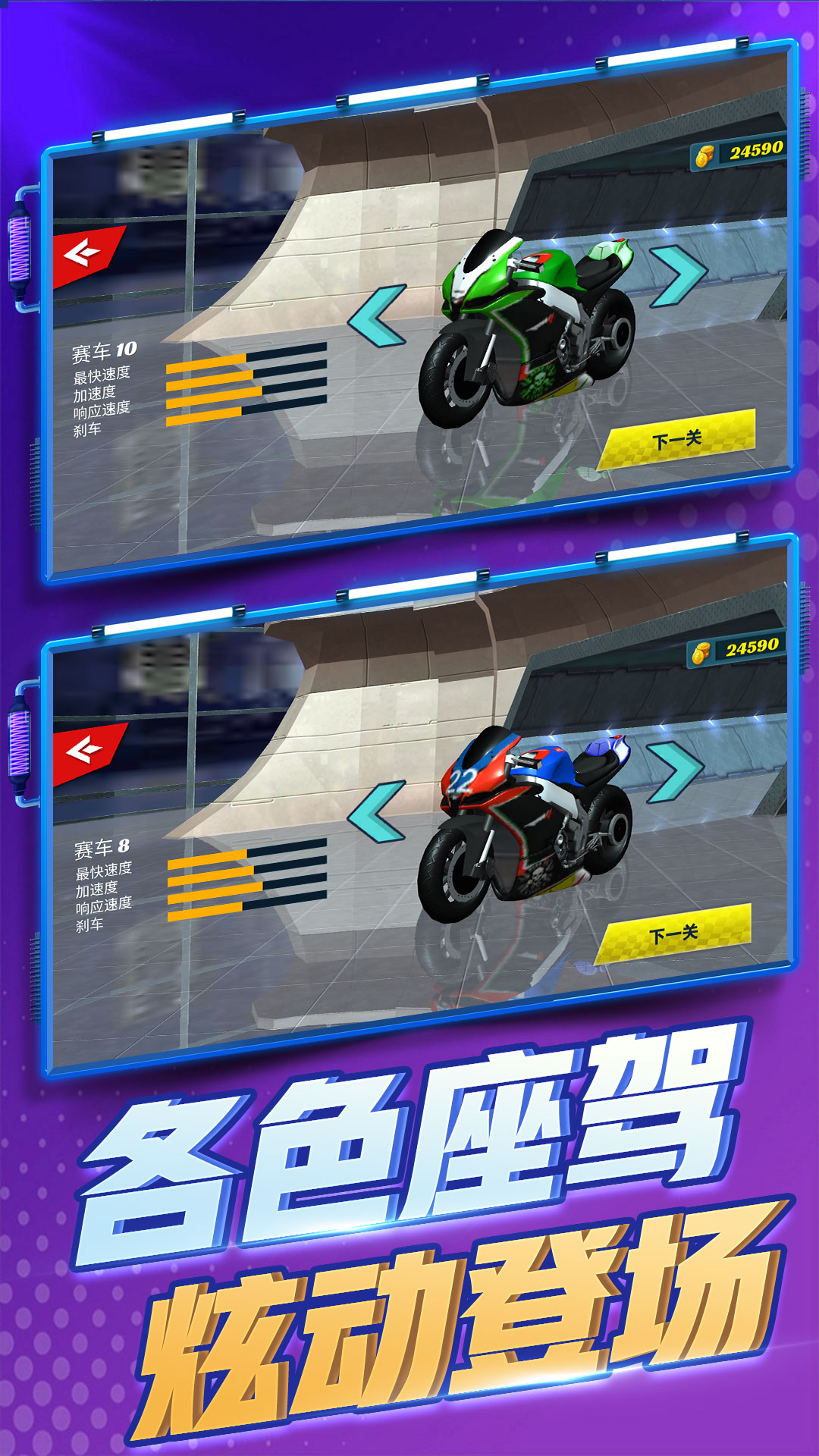 不同赛车性能属性各不相同,找寻与你为契合的赛车伙伴吧,更有多种难度场地赛道进行飙车体验,西部大平原,凛冬雪原,山野丘陵,难度各异,体验迥然不同