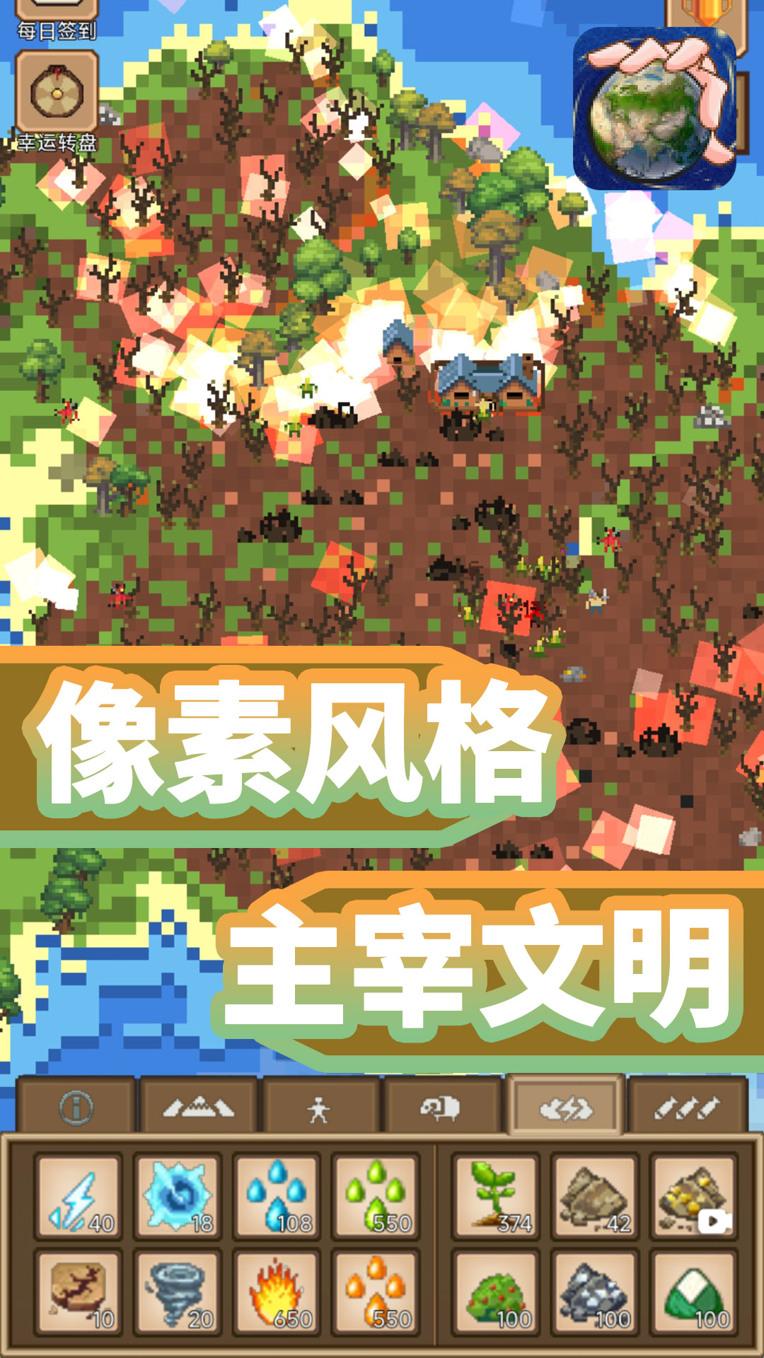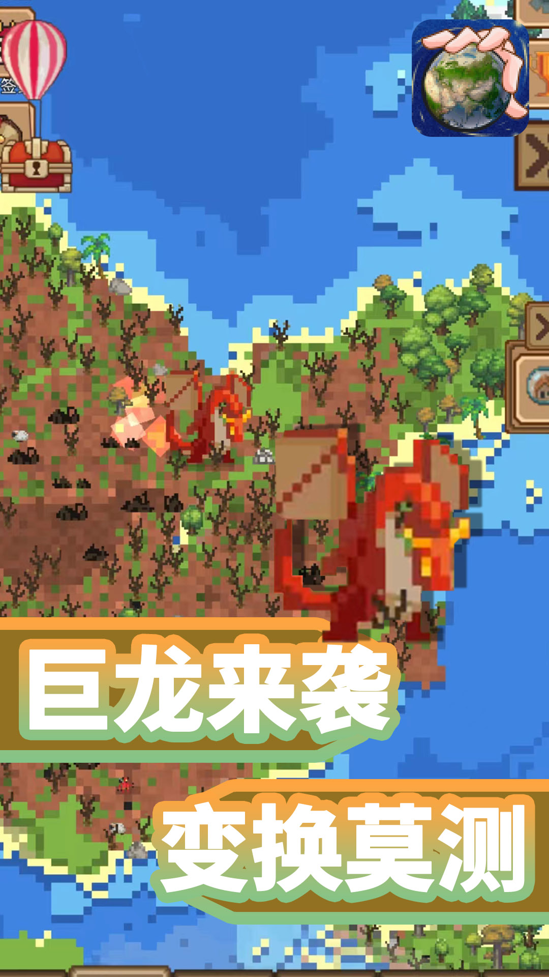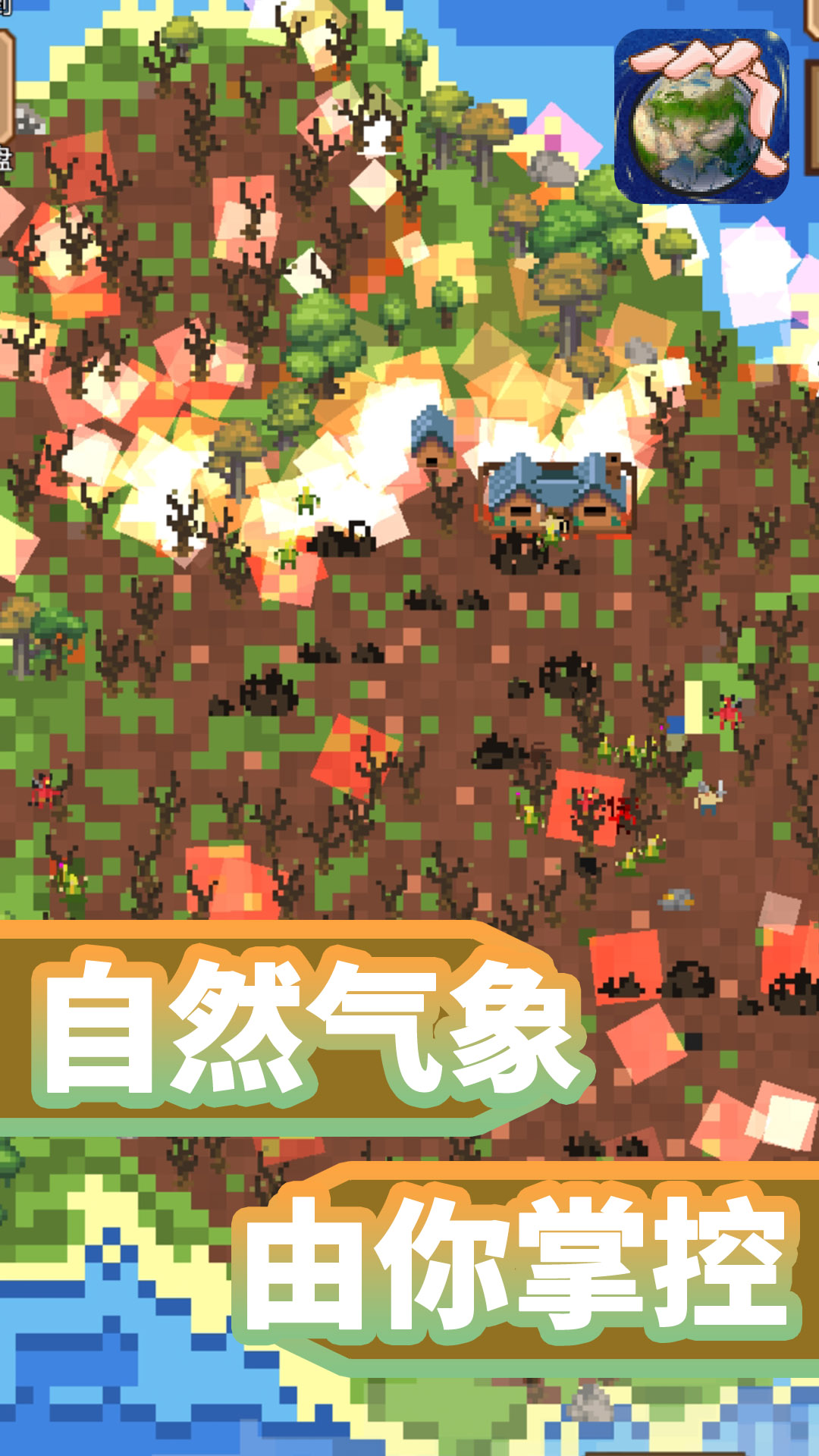 在这个像素世界里你可以自由的创造,各种生命还有植物都可以放置到地球的任何一个区域,看着生命不断延续传承的感觉实在是太棒了,你还可以模拟各种自然灾害,比如在海边来一场巨大的海啸,在火山边制造一场巨大的海啸,游戏玩起来操作很简单,是一款可以快速上手的休闲小游戏