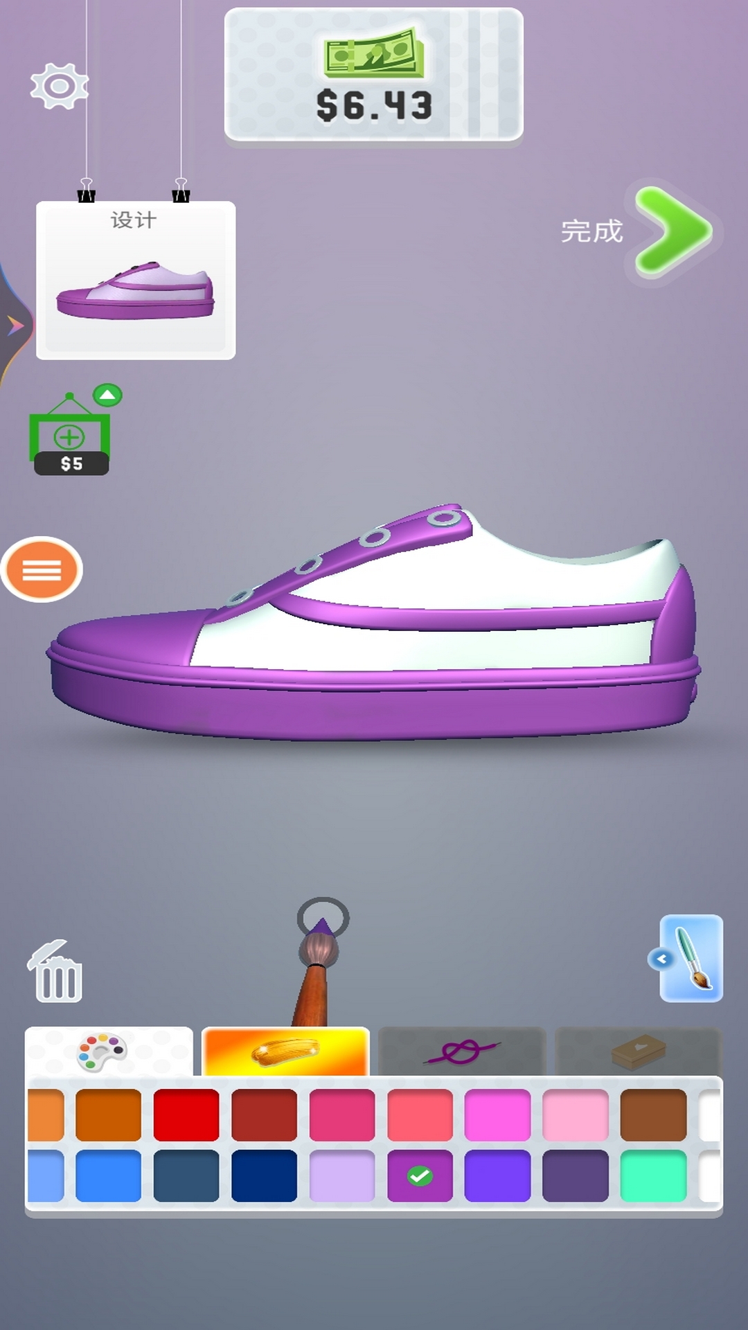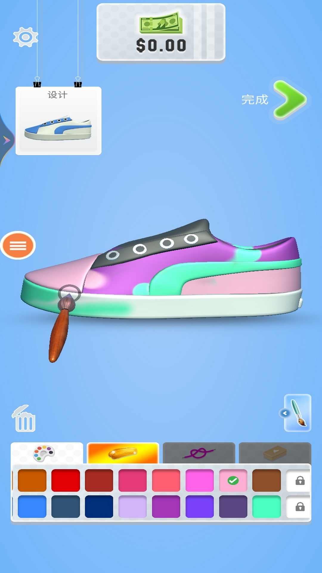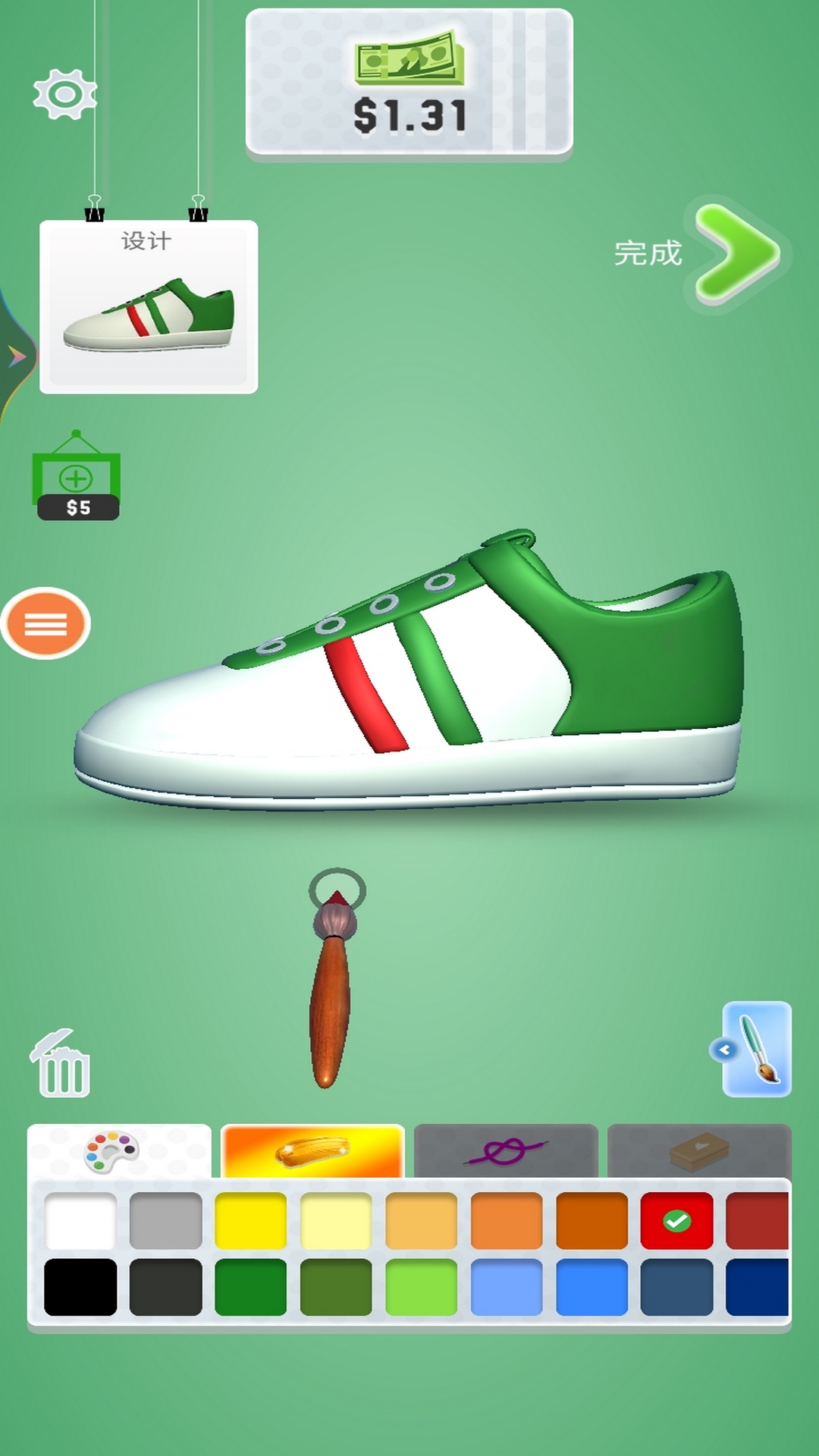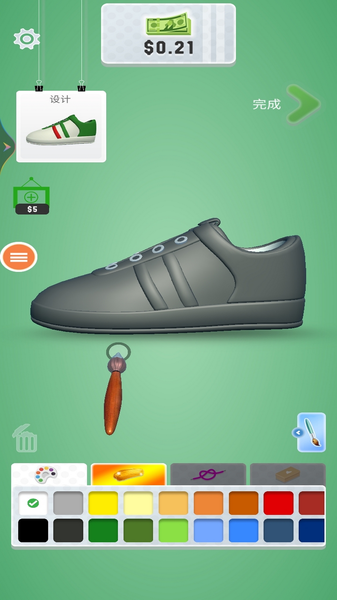 这是一款休闲的设计游戏,在游戏中,玩家根据要求设计出独具风格的鞋子,搭配出时尚的潮装。开发自己的想象力,设计出大家喜欢的鞋子风格。喜欢就下载试试吧!