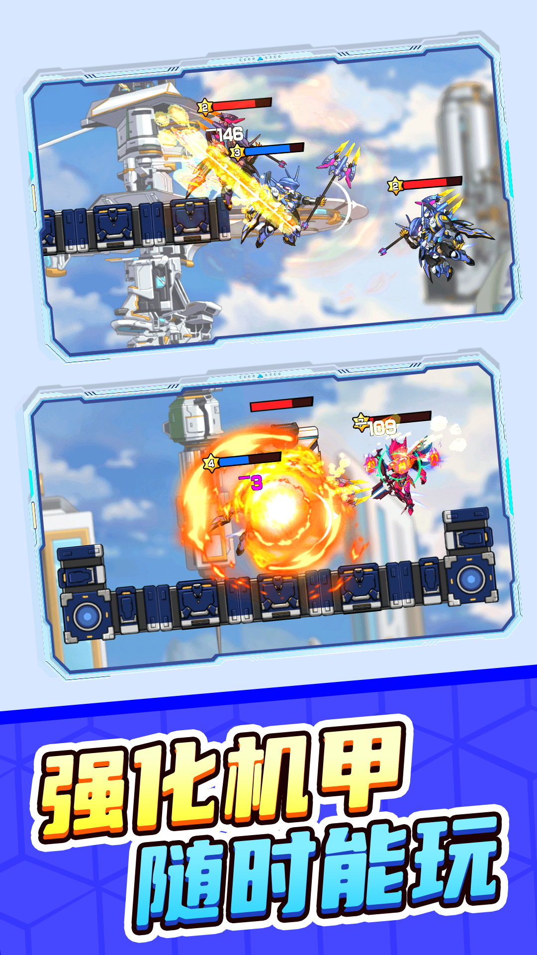 《机械龙进化》一款充满了未来科技感的热血机甲格斗对战游戏,游戏的画质相当细腻精美,更有数十种不同类型的机甲英雄可供玩家解锁体验,而且每一款机甲都有专属的被动属性和技能,改装强化你的机甲就可以在战场快速的解决对手获得比赛的胜利,喜欢硬核机甲的小伙伴们千万不要错过了!