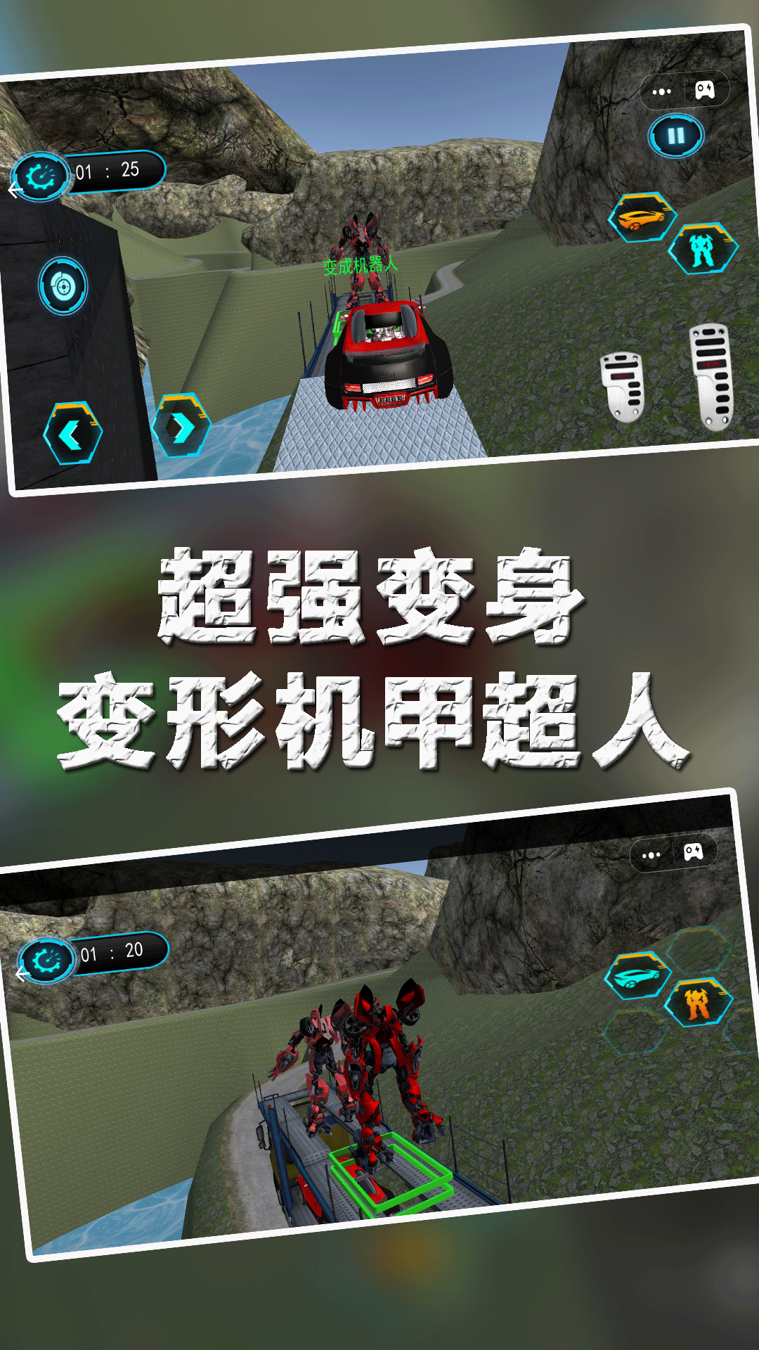 《变形机甲超人》带你踏上一段惊险刺激的机甲冒险之旅。成为优秀机甲驾驶员,你将承担高风险的运输任务,穿越城市、荒漠、深海等多样地形。通过不断变换机甲形态,应对各类极端环境和障碍,保证货物安全抵达目的地。在任务中,你将面对突如其来的挑战和敌袭,需要灵活应对,勇往直前。逐渐揭示背后的阴谋,以超级变形机甲的力量改变整个世界的命运。准备好迎接这场前所未有的机甲之旅吧!