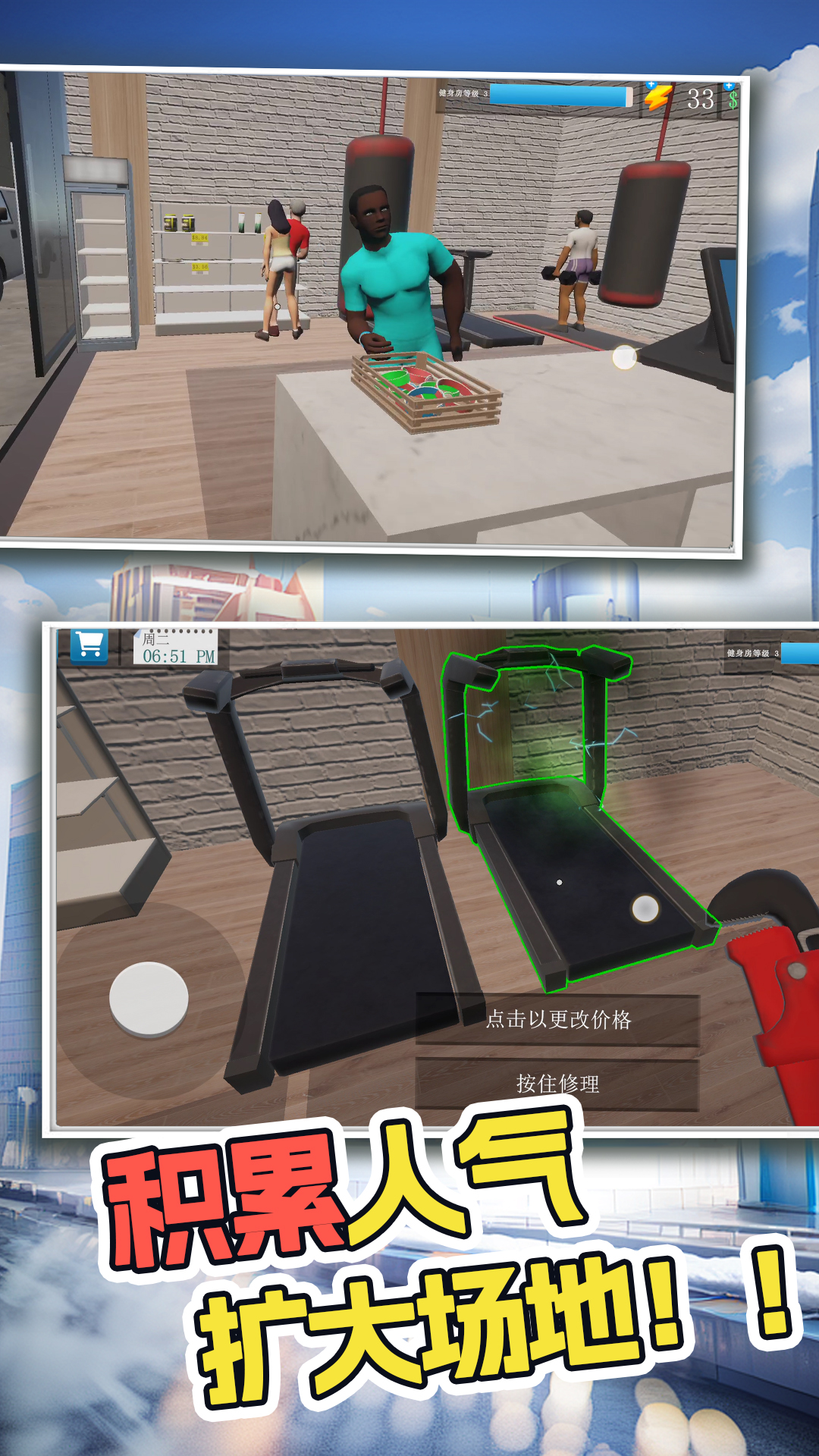 作为业主和经营者,您将监督健身房体验的各个方面。游戏从一个简陋的、设备不足的空间开始,在你的指导下,它将变成一个先进的健身设施。您的任务包括管理客户,解码健身腕带中的数据以了解他们的偏好和锻炼程序,并确保您的健身房满足他们的所有需求。