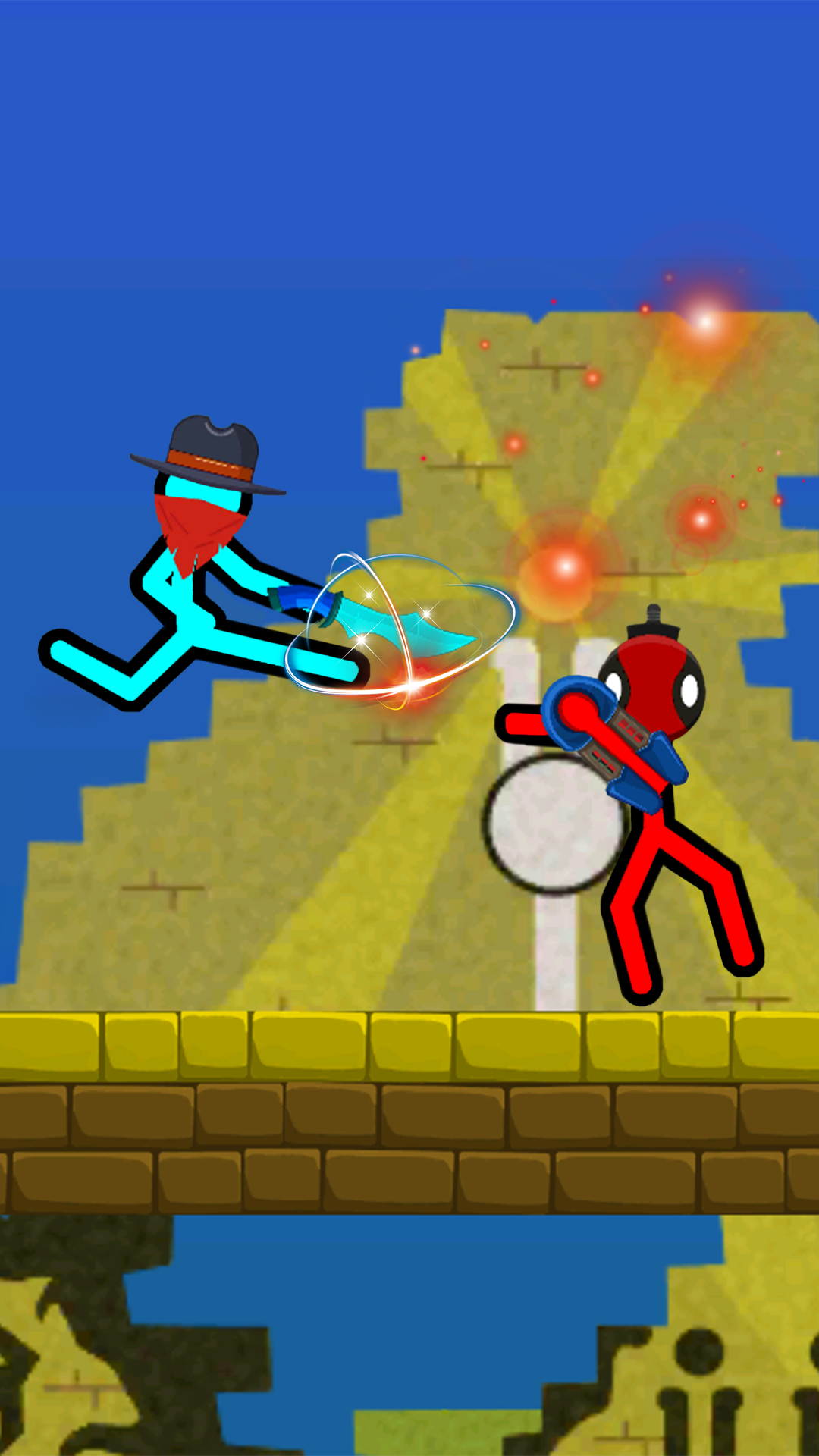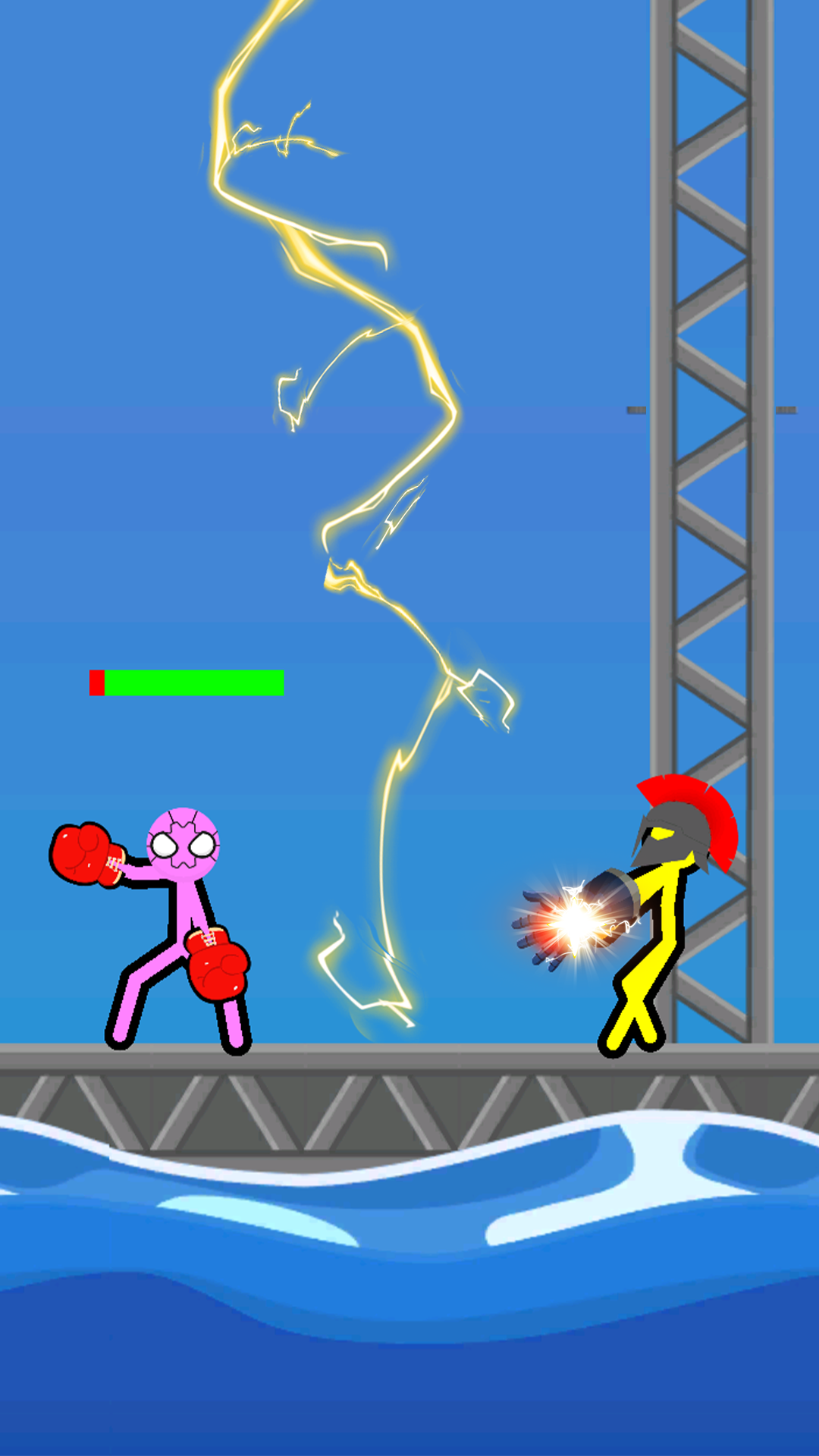 《激战火柴人》是一款超好玩的火柴人动作格斗游戏。好斗的火柴人们一定要通过一场比武来确定谁是王者。游戏操作非常简单,通过虚拟摇杆控制火柴人的移动,通过灵活的移动争取有利的攻击位置将敌人击败。