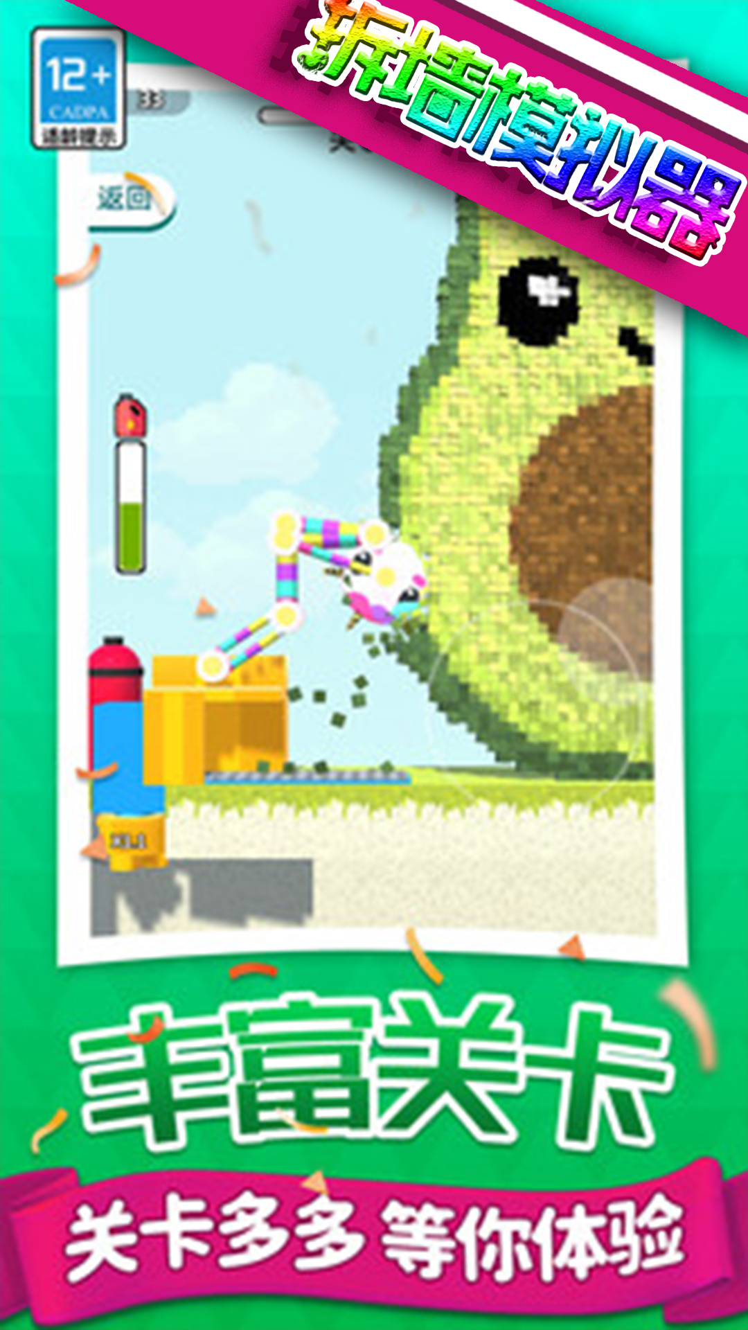 《拆墙模拟器》是一款像素风的休闲益智创意类小游戏。开局一台挖掘机,可以随意粉碎各式墙体,过程解压;每一个关卡设置了不同通关目标,海量关卡等你来挑战;通关成功还能解锁全新工具,各种稀有矿物等你来收集,快来体验一下吧~~~