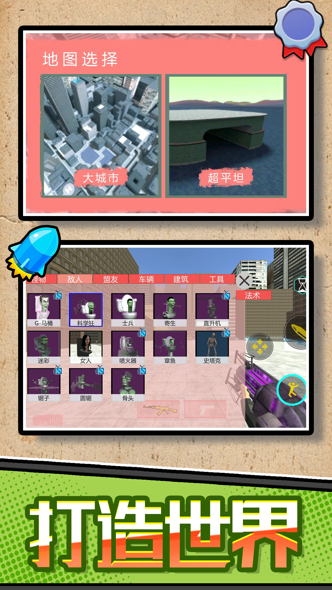 《异世界马桶大战》带你进入一个荒诞而刺激的冒险世界!在这里,你将与长相怪异的马桶人展开一场场惊心动魄的战斗。使用各种独特而强大的武器,发挥你的战斗技巧和策略,击败这些邪恶的马桶人,保卫你的异世界家园。游戏充满创意和乐趣,让你在战斗中体验到不一样的快感和刺激。准备好挑战马桶大军的来袭,展现你的勇气与智慧了吗?快来加入这场独特的马桶大战吧!