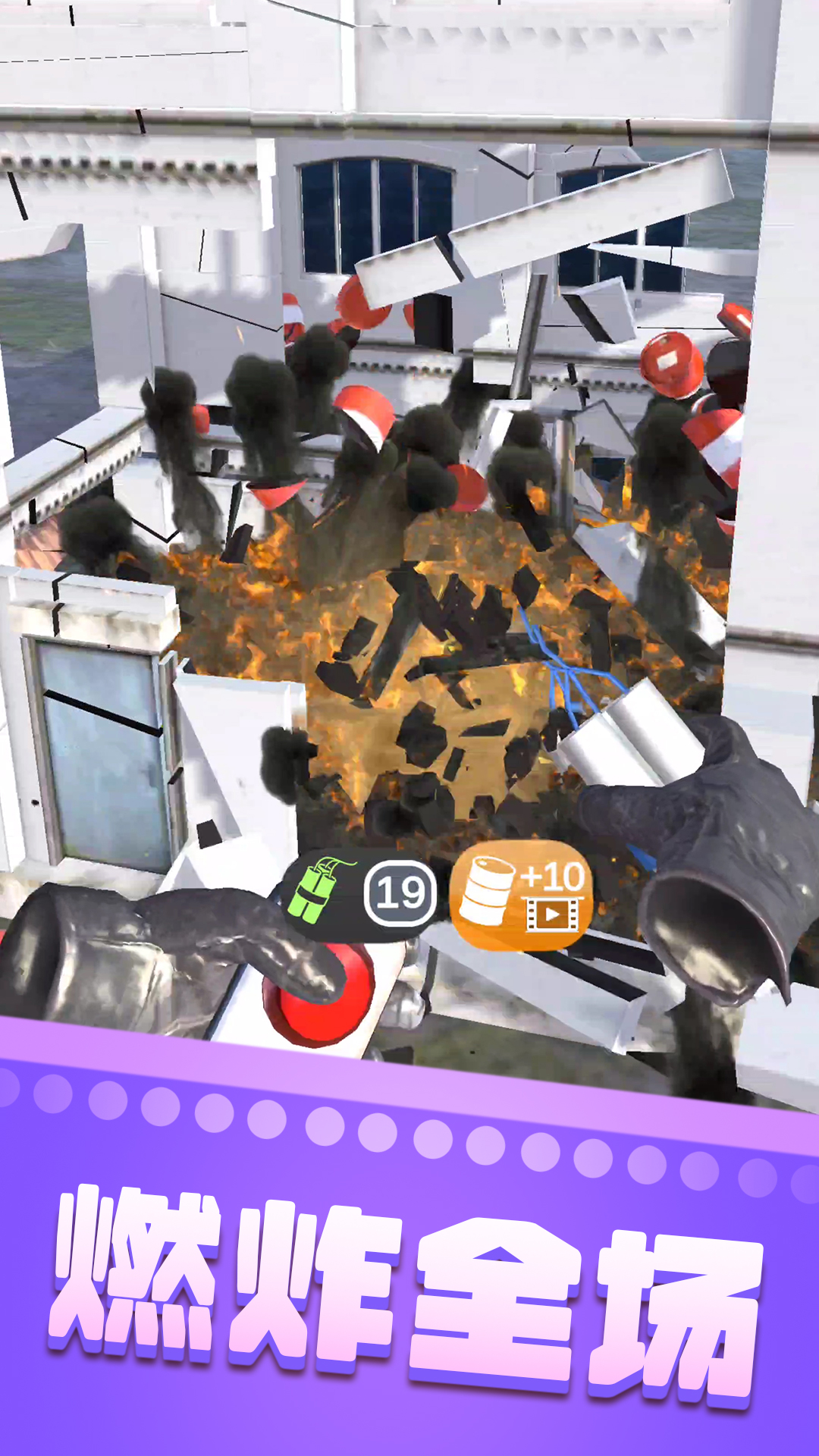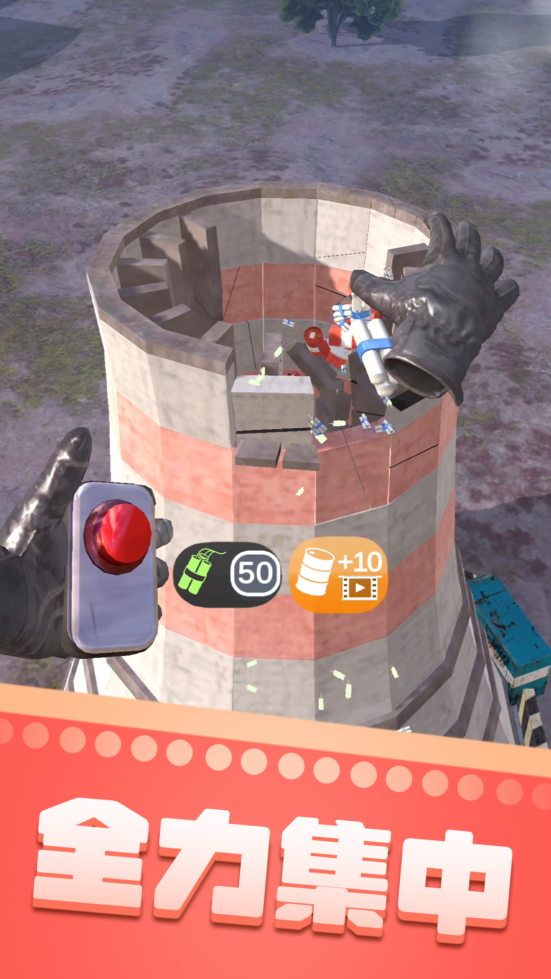 游戏风格偏向卡通,画面较为简洁,但在爆破效果的呈现上依然有一定的趣味性。适合喜欢休闲解压的玩家