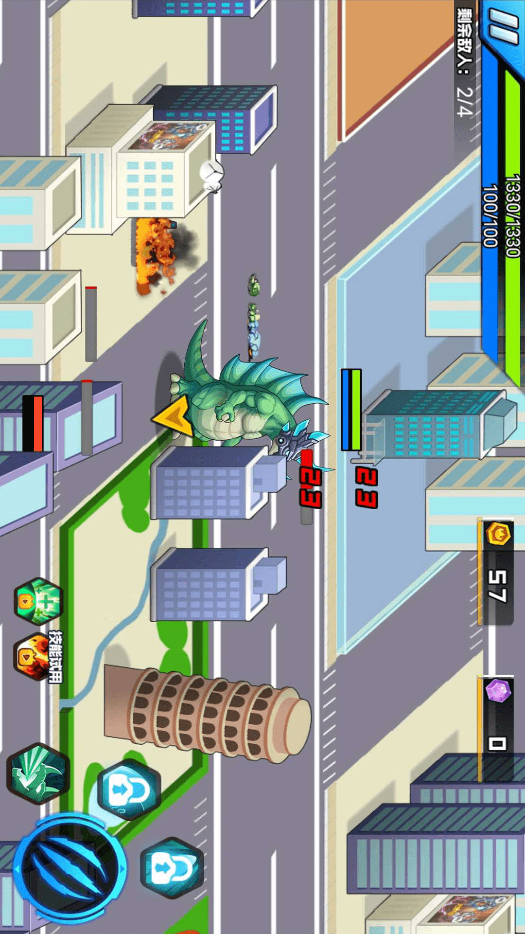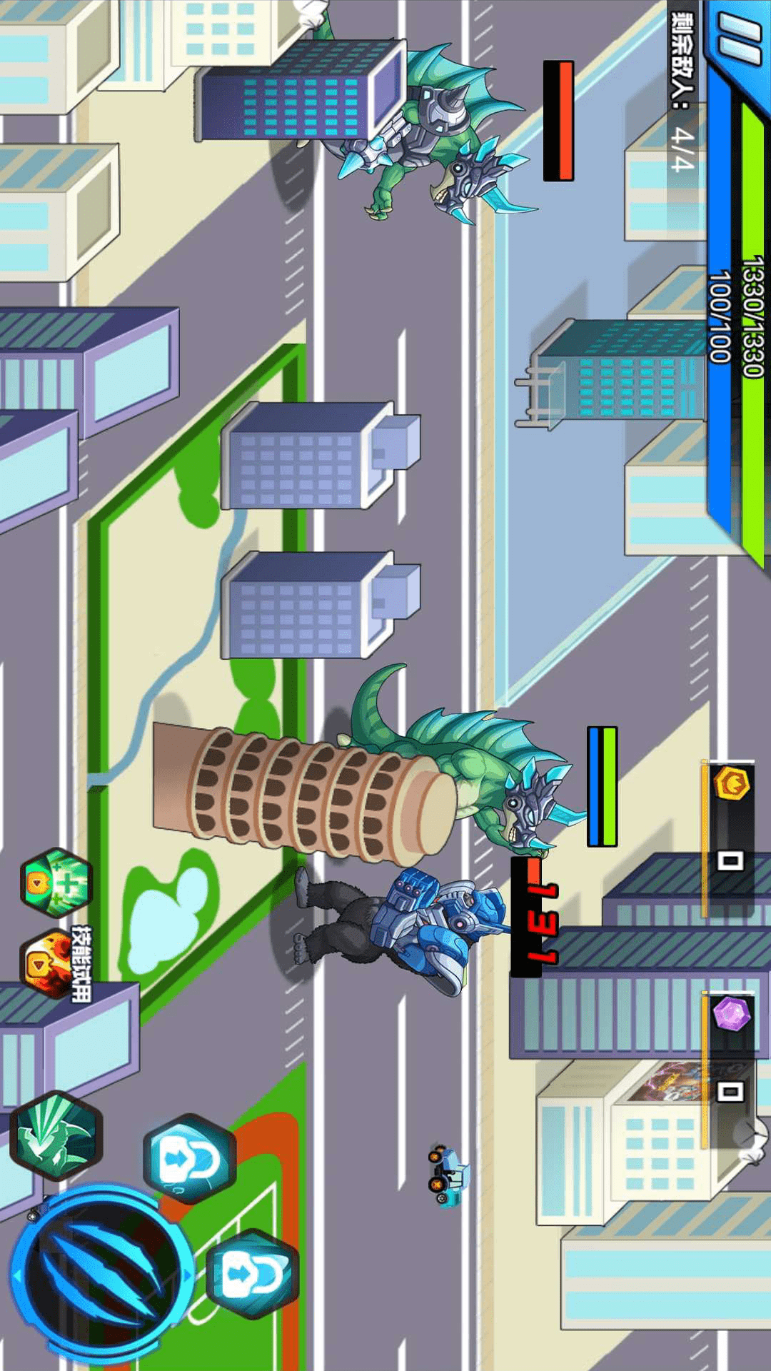 操控机甲光巨人尽情保卫城市,每一关卡都有不同的任务,玩家操控机器人在城市中进行对抗,闯关胜利将获得奖励,奖励能够升级自己的装备和技能,消灭掉更多城市敌人,在后面的关卡中更容易获胜。