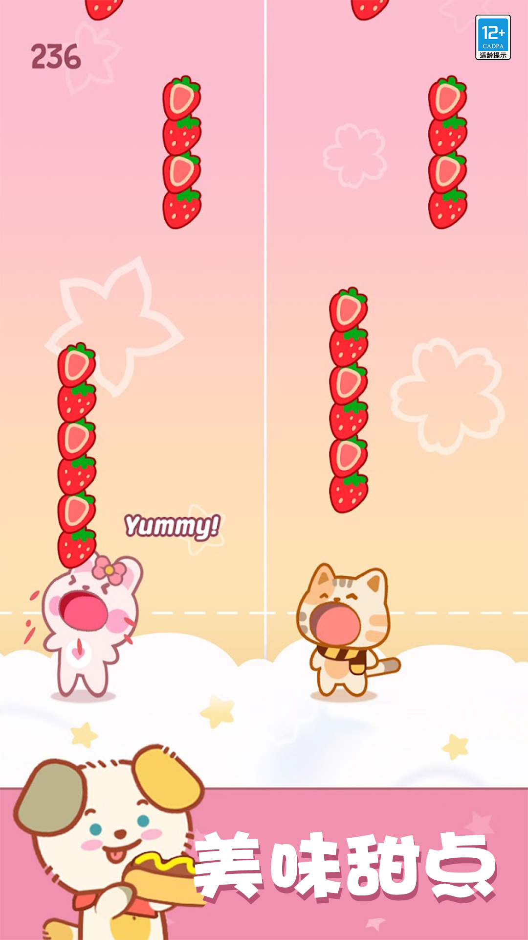 在游戏内,你只需要左右滑动屏幕上的小动物们,让它们能够接到从天而降的美食,就能够发出对应的美妙音符,而这些音符正和音乐相契合,两者结合达到完美的合唱效果!你可以在游戏内通过完成音乐挑战,获得更多可爱的动物朋友们,这些朋友都可以参与到合唱当中,它们除了各自的奇特趣味造型之外,合唱声音也各有特色,让你能够在游戏内听到不同小动物们可爱的声音!同时,你还可以选择根据自己的喜好,挑选想让动物们接住的食物类型,包含寿司、甜甜圈等美味食物,解锁不一样的视觉体验!