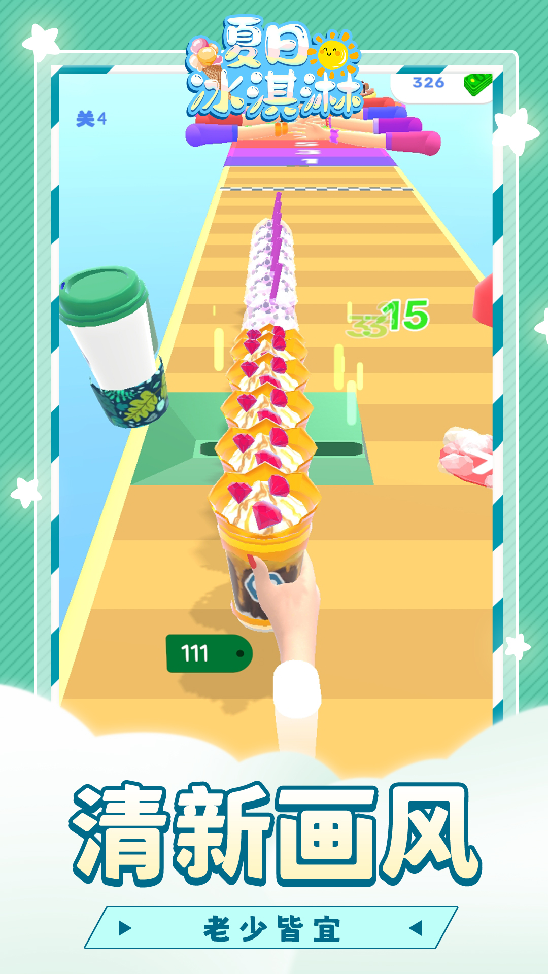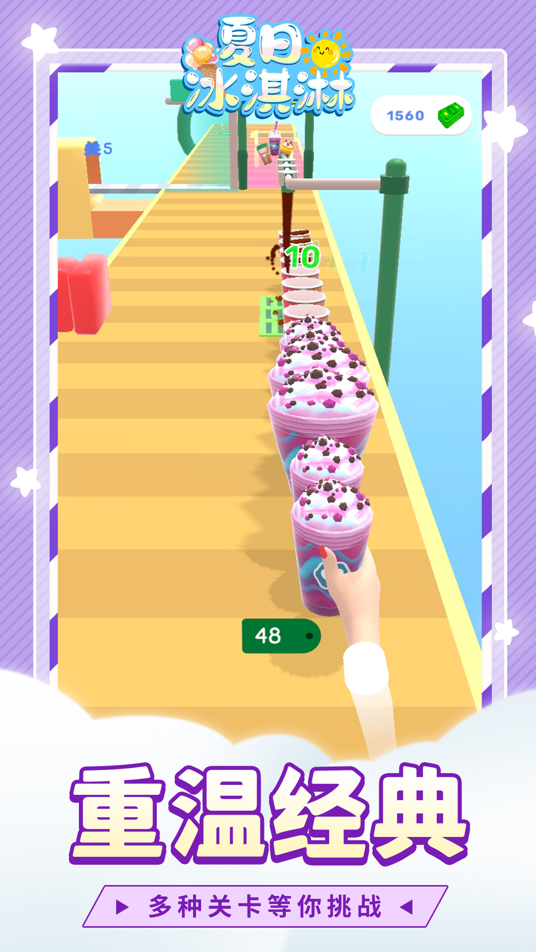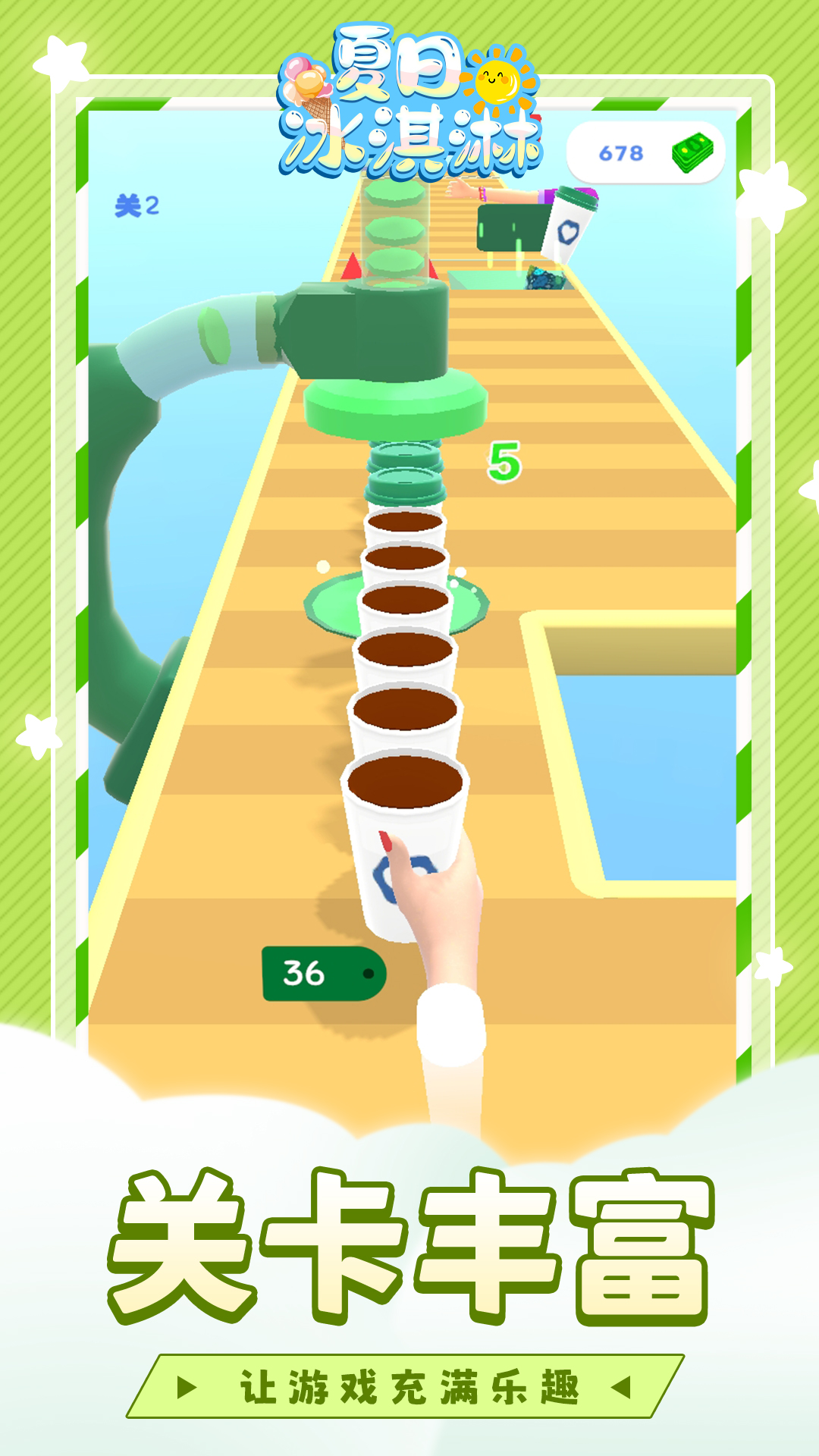 没有一杯冰淇淋冷饮,谁能度过炎热夏日的一天?《夏日冰淇淋》是一款带有跑酷元素的冰淇淋杯子堆叠游戏,在这杯美妙的冰淇淋中,您有机会收集所有的冰淇淋并包装冰淇淋,将它们填充不同的口味,将它们堆叠并出售给客户并获得奖励。