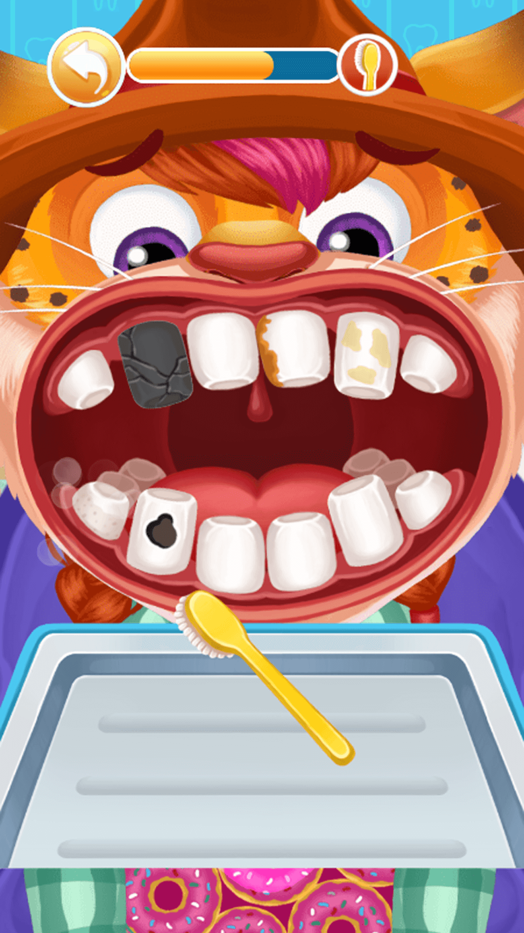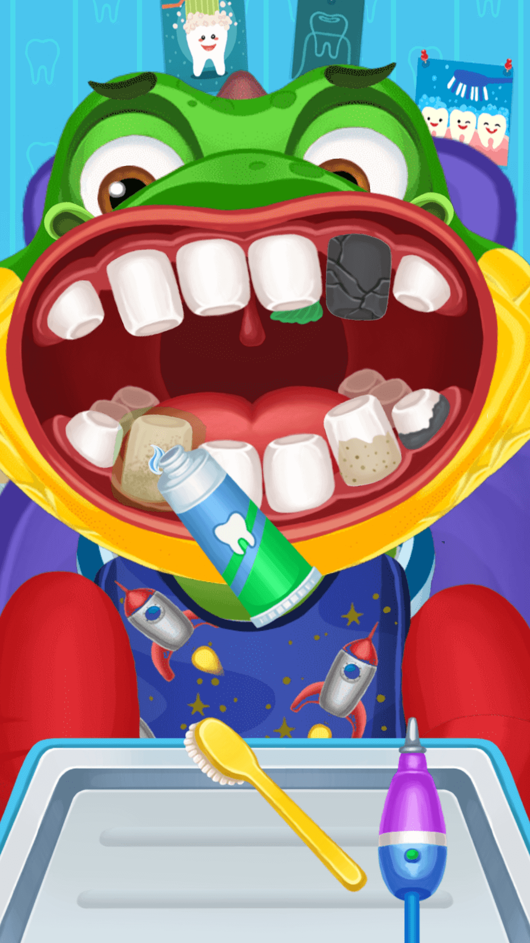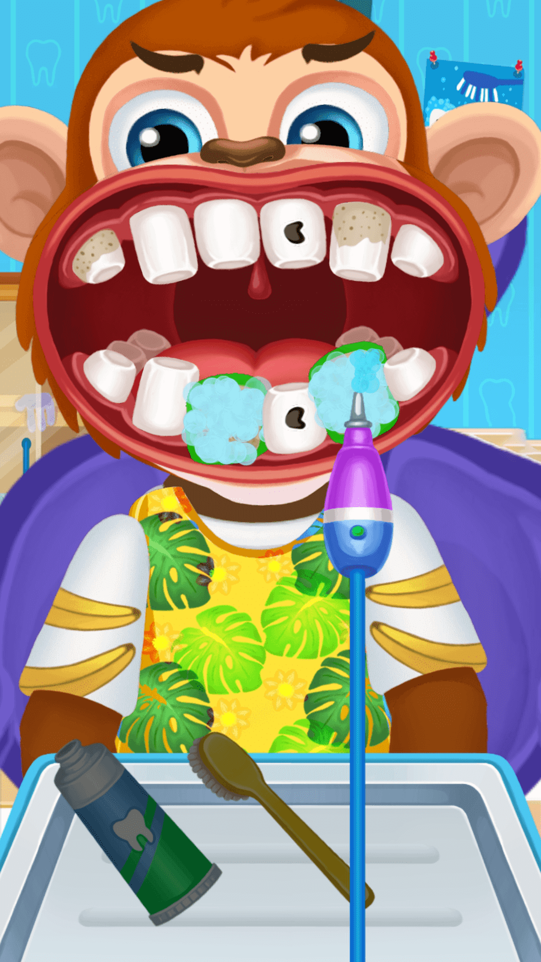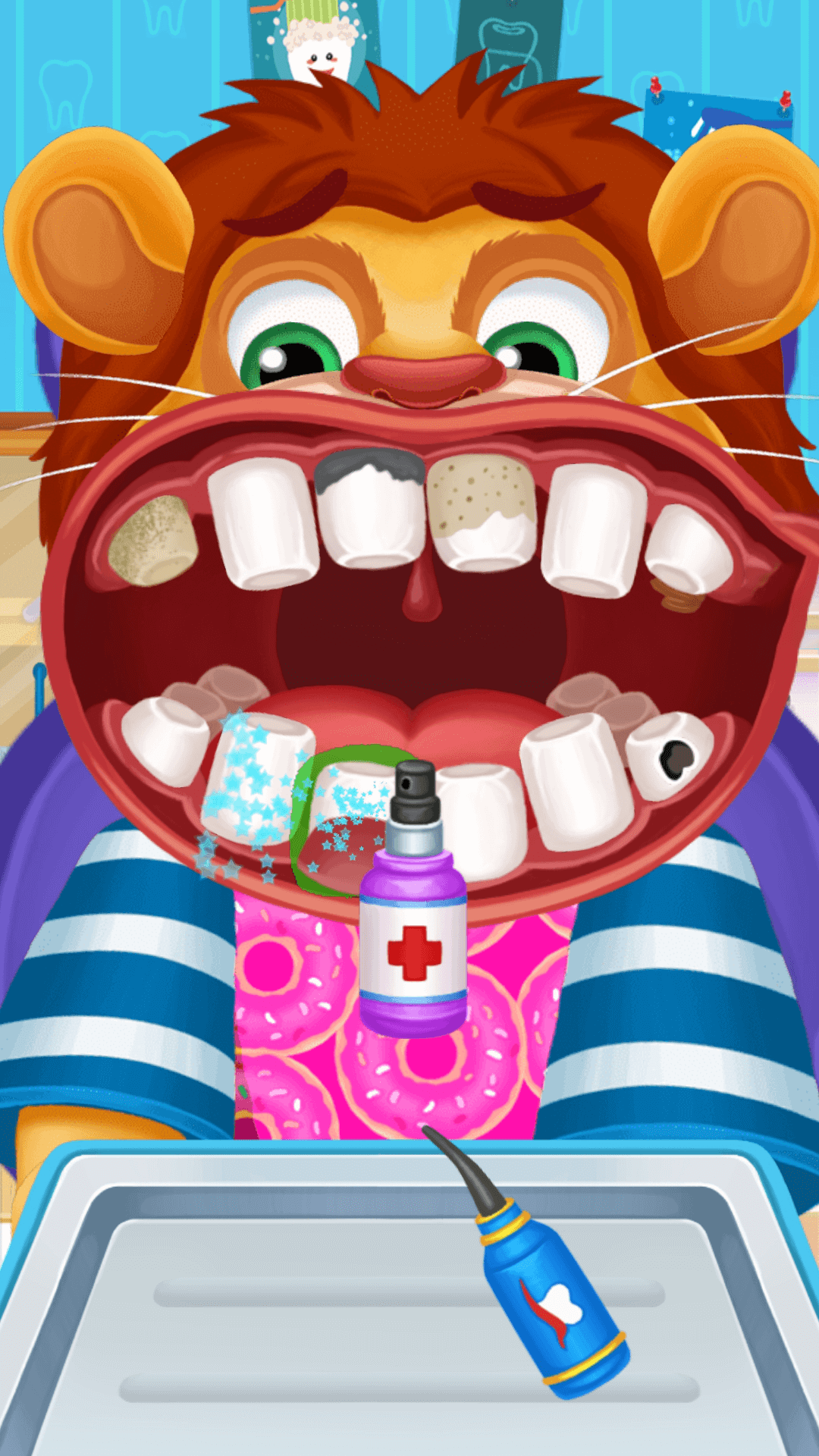 这是一款模拟牙齿护理的休闲益智游戏,我们可以通过扮演牙医帮助小动物刷牙、洗牙、拔牙、补牙等治疗,让宝宝更加了解爱护牙齿的重要性,养成少吃甜食,勤刷牙的好习惯,并能克服对治疗牙齿的恐惧!