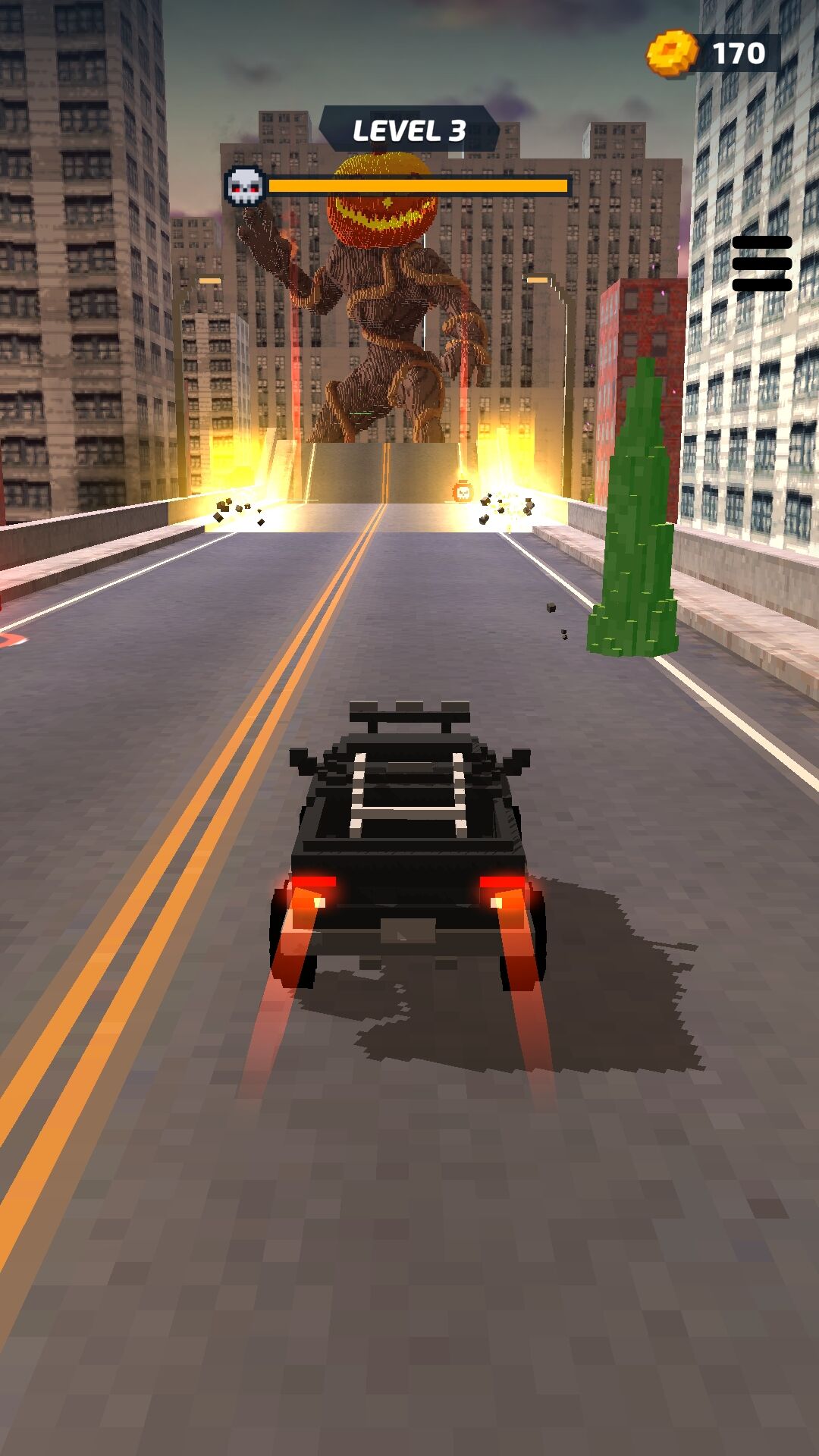 你需要驾驶你的汽车猛加油门,速度,力量直接奔向撞击大怪物,然后一而三,再而三,不停循环……