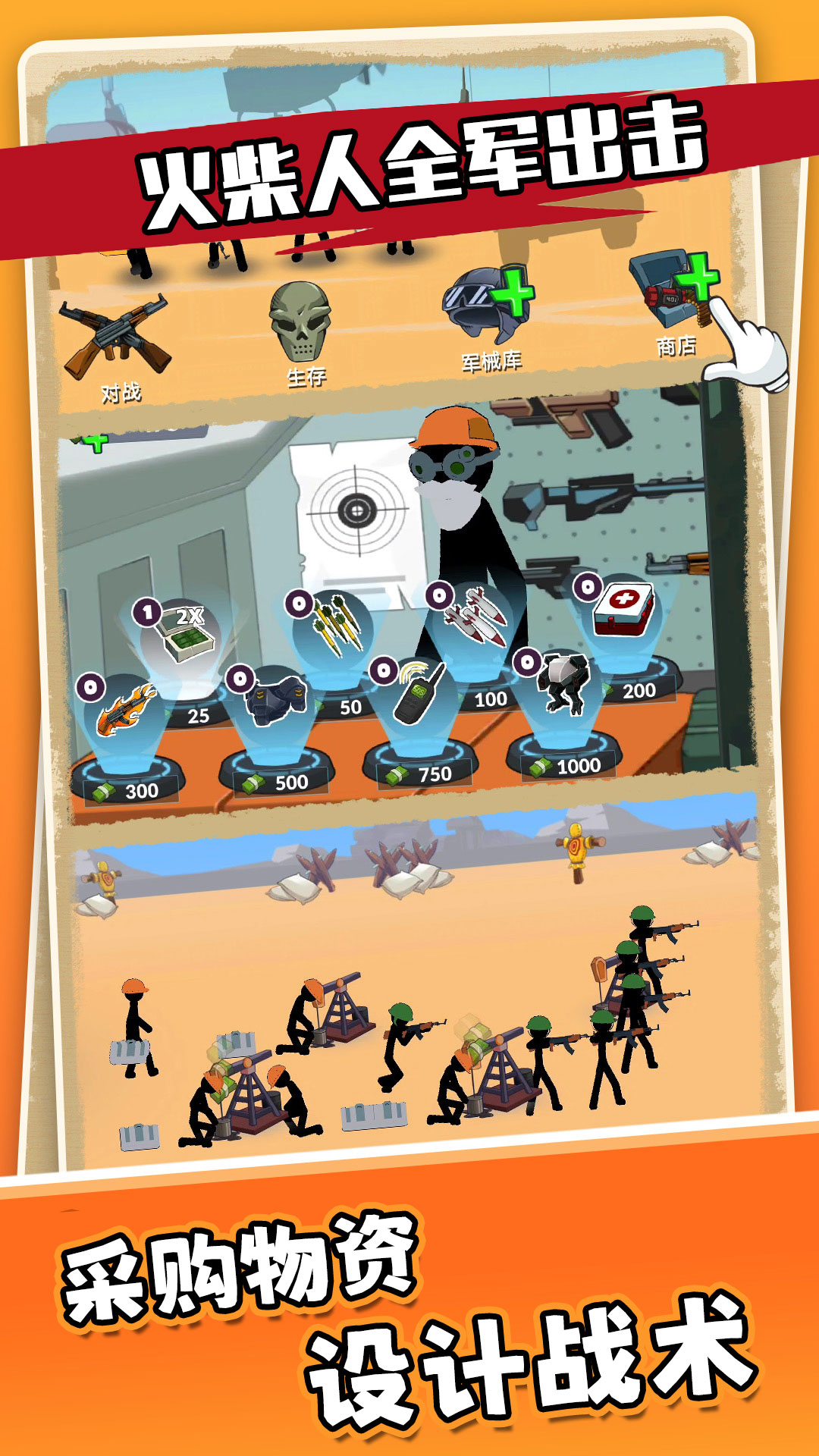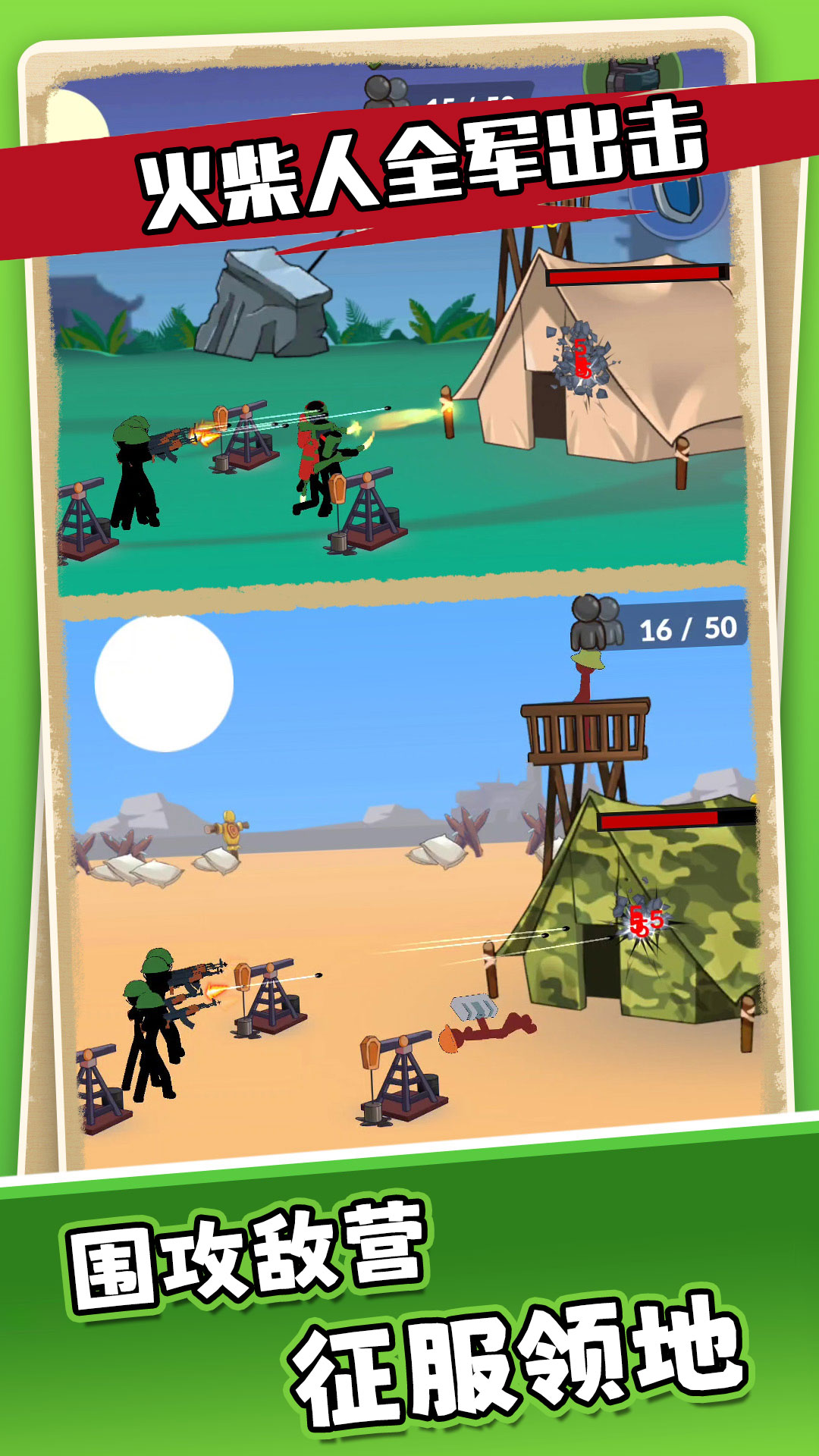《火柴人全军出击》是一款全新且令人上瘾的火柴人战争策略游戏,游戏中,玩家将建造单位、挖掘金矿、训练和招募工程师、火柴人战士、冲锋枪手、火焰喷射器、机器人、坦克甚至直升机,最终组建一支强大的军队,去摧毁敌方雕像,夺取所有领土!