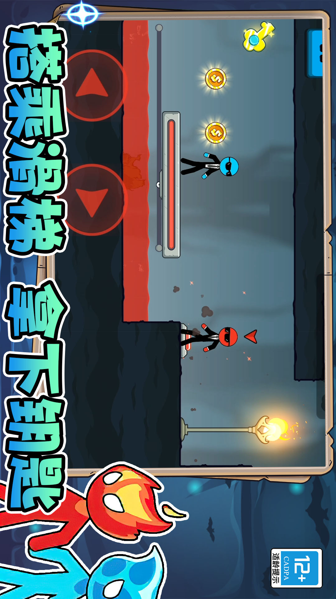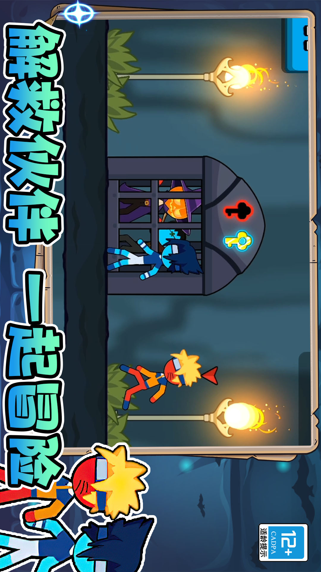 火柴人迷宫逃亡是一款火柴人类型的冒险手游,在游戏中,你需要同时控制红蓝两个火柴人的行动,克服种种困难,并终逃离森林。游戏画面精美,玩法有趣,更有着各种动漫里面的角色形象来供你选择。