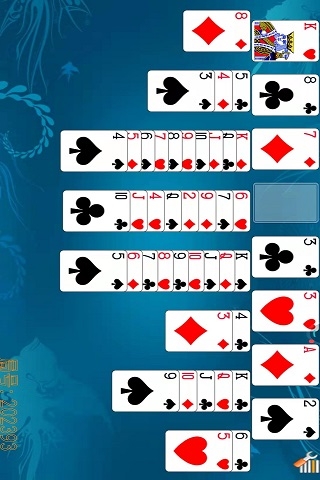 空当接龙这款游戏的目标为:在右上角的四个回收单元里分别构建一叠牌,每一叠牌都要有13张,并且这些牌的花色要相同,牌的排列顺序必须是从小(A)到大(K)。