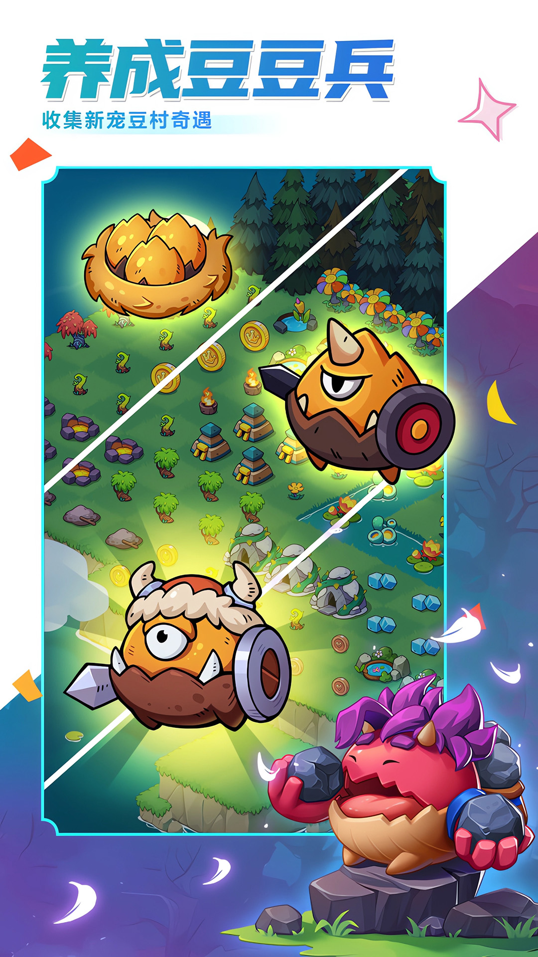 《豆豆的村庄》是一款超解压有趣的休闲合成+策略战斗手游!在这里,合成是强大的魔法,奇迹遗迹资源豆豆蛋等一切物品升级全靠合。合成各种神秘奇迹,触发探险玩法,还能挂机躺赚;合成豆豆蛋秒升级,化身豆村英雄保护家园!
