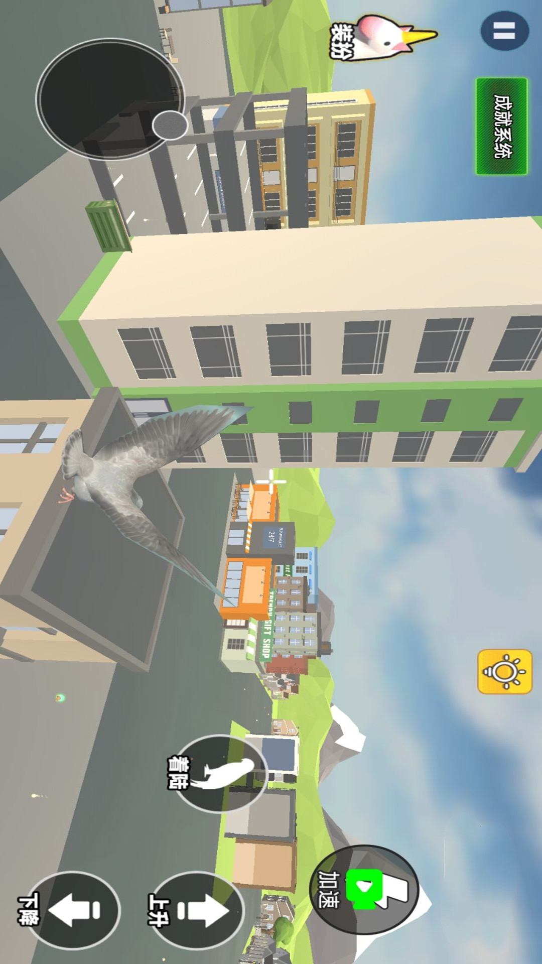 游戏中你将可以亲身体验一次鸟儿飞翔的感觉,你可以选择谷仓猫头鹰、乌鸦、老鹰、金刚鹦鹉、鸽子、知更鸟、海鸥、椋鸟等9种鸟儿,在城市中穿梭,山林里飞翔,海岛上盘旋,雪地飞行。快一起来像鸟儿一样飞翔吧!
