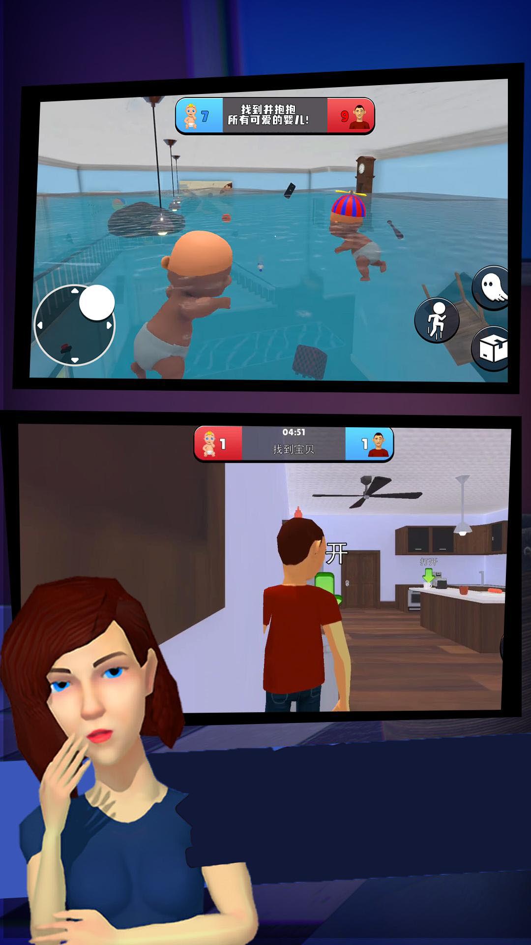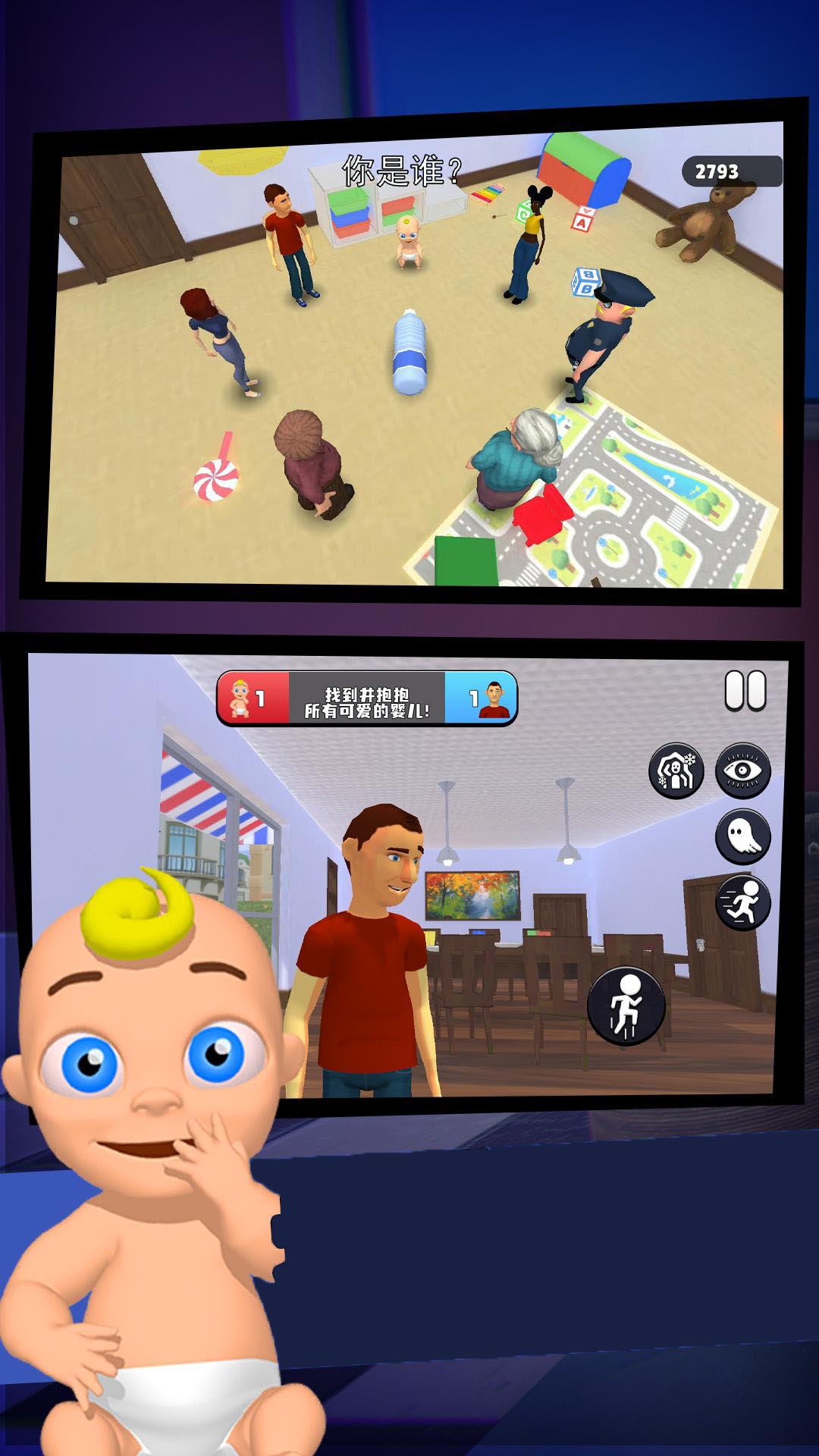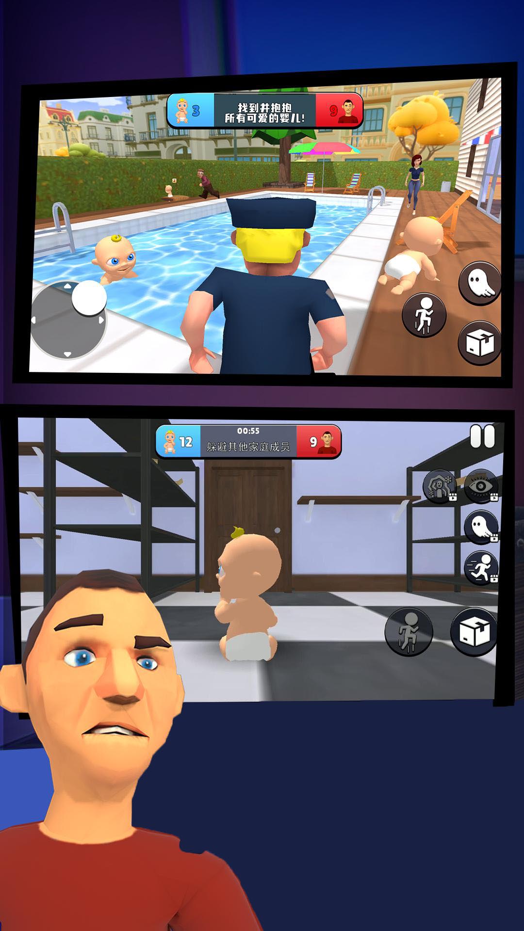 谁是你爸爸2是一个脑洞新奇的捉迷藏游戏,你将在游戏中扮演一位调皮孩子的父亲,照看调皮淘气的宝宝,在确保它们安全的同时,从可以的地方将他们找出来。作为一款3D立体造型的捉迷藏手游,以亲子互动作为切入点,将激烈对抗的捉迷藏玩法与轻松诙谐的亲子游戏相结合,上演一场场令人惊悚刺激的娱乐大戏。你可以选择扮演儿童或是父亲,与自己的亲属在家中开心快乐的游戏。