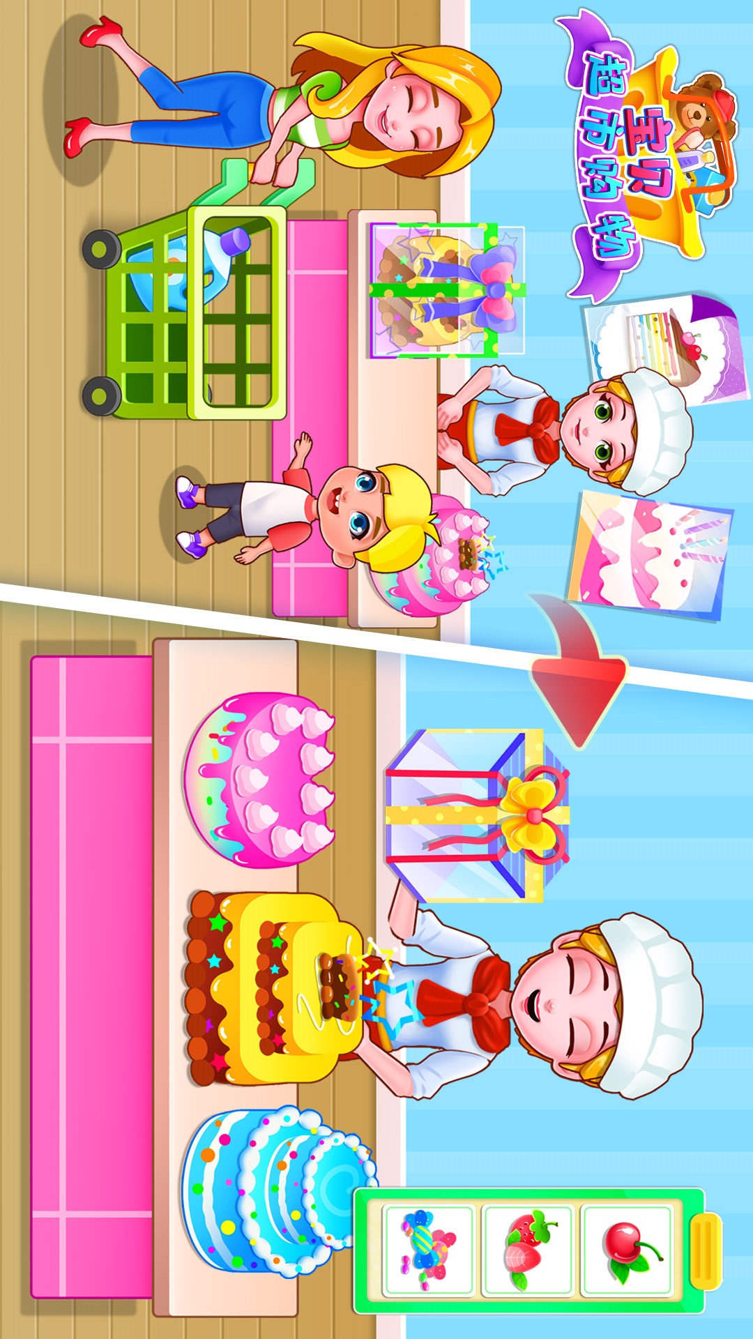 宝宝还可以体验制作蛋糕,学习烹饪方法。先选择一款蛋糕胚,是黑巧克力蛋糕还是美味冰淇淋蛋糕?然后用可口的奶油裱花,完美!蛋糕就完成了啦!