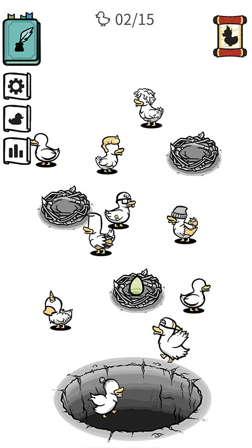 这是一款充满轻松乐趣的休闲益智游戏,游戏的目标是孵化出数量尽可能多的奇特鸭子!在孵化过程中,鸭子的数量会持续增加,并且它们会开始产生基因变异哦。随着一代又一代地孵化下去,不断会有变异的鸭子出现。在这里,你能看到身形巨大的鸭子,长着奇形怪状翅膀的鸭子,还有各种各样疯狂的鸭子。你是否想要一些意想不到的惊喜呢?那就把孵化出来的鸭子扔进洞里,看看究竟会发生什么奇妙的事情吧!