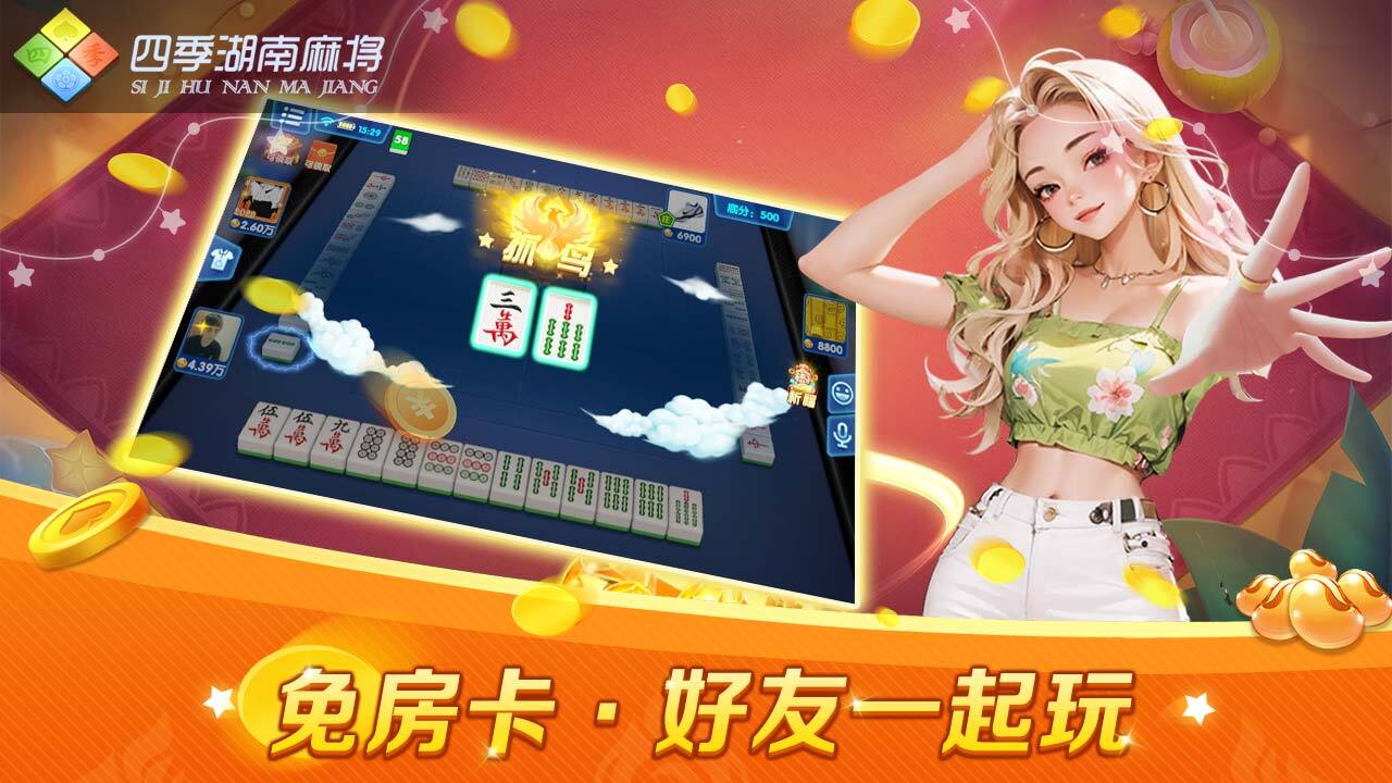 四季湖南麻将来啦!这里有红中麻将、长沙麻将等多种玩法哦。而且啊,它是免房卡的呢,特别方便。好多湖南老乡都在玩这个麻将,你还不快来加入吗?
