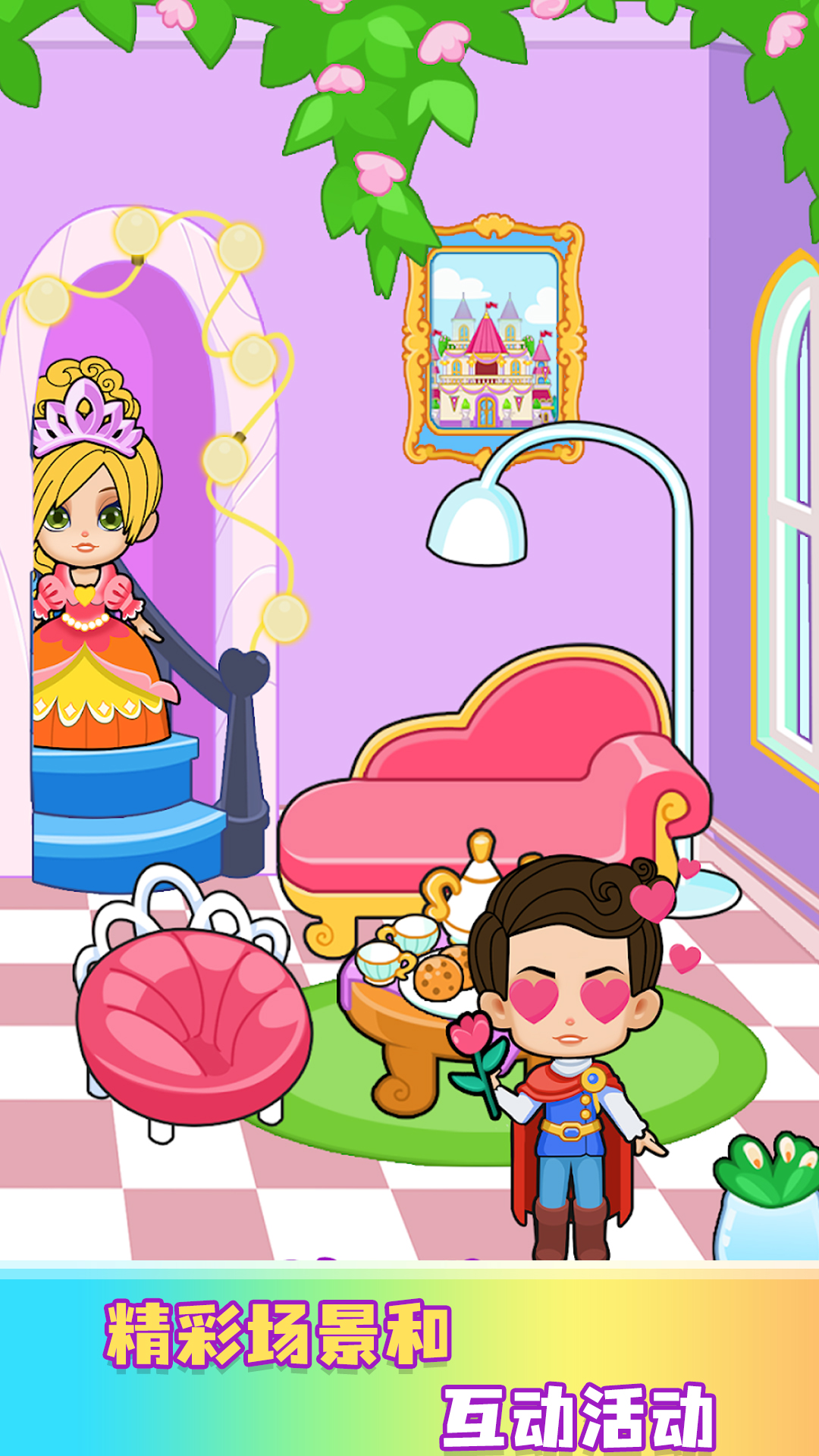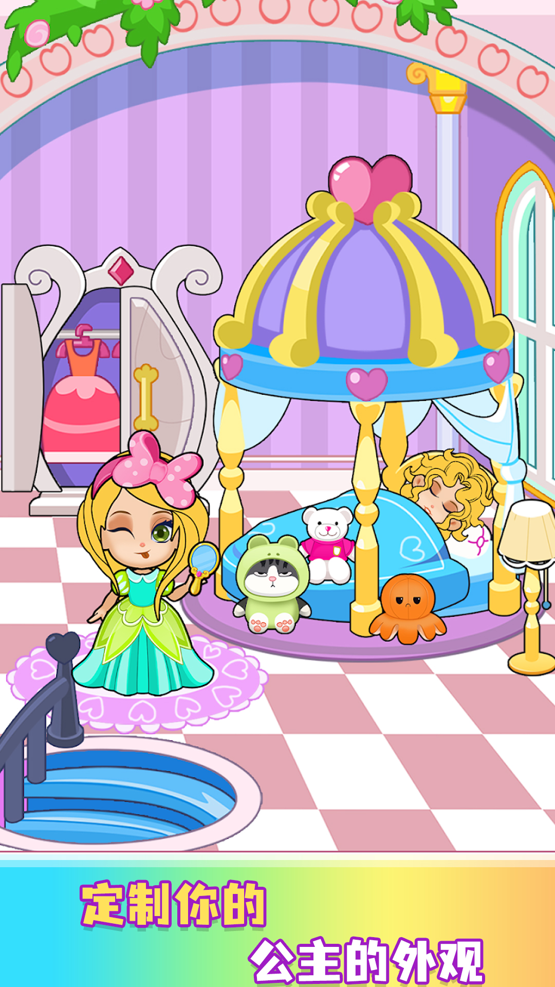 创造你的城堡故事并探索所有房间。体验真正的公主童话生活并探索这个王国。让您步入幻想和童话世界,培养他们的想像力,想像和设计他们理想的公主角色。让我们一起制作富丽堂皇的服装,调整风格,让您的公主成为优雅和魅力的缩影。
