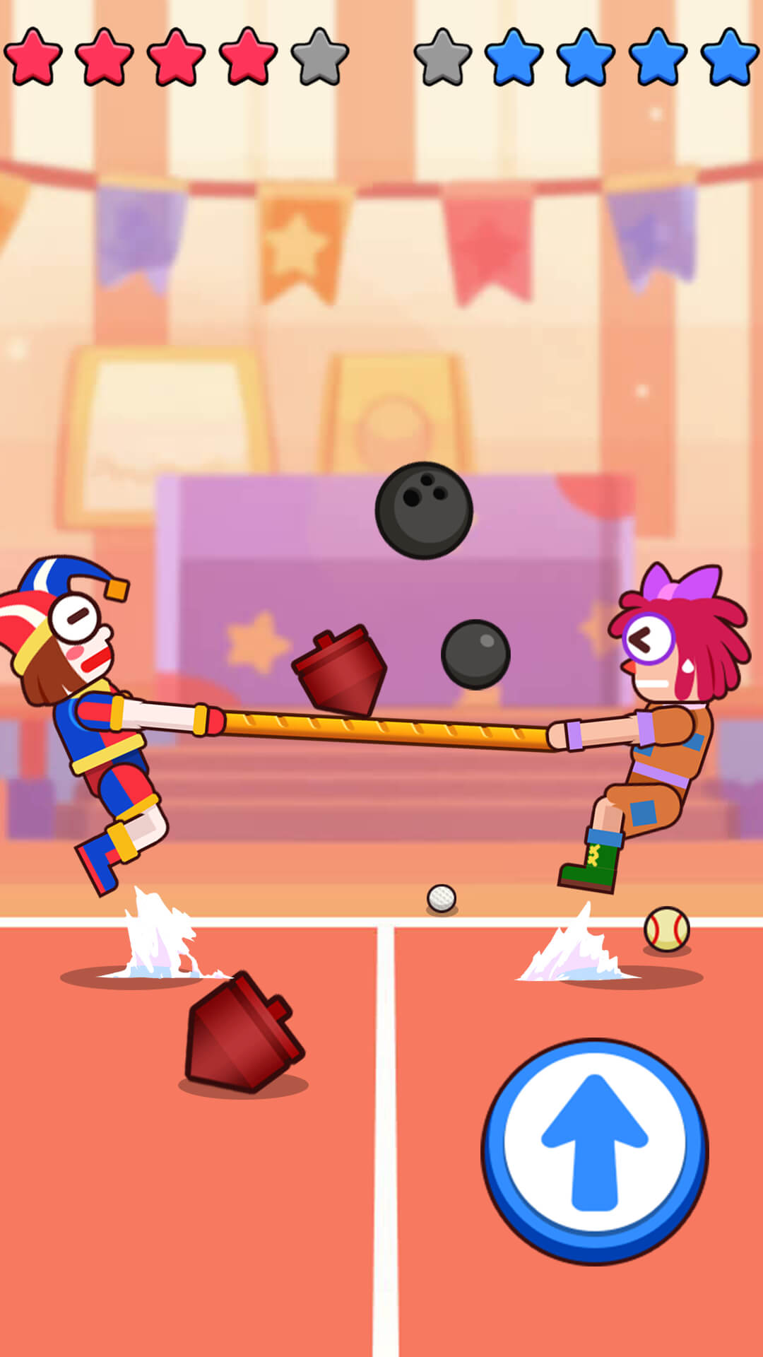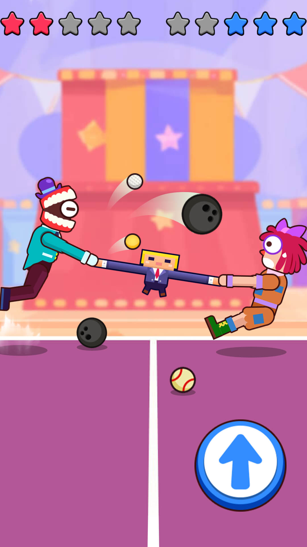 这是一个富有竞技性和娱乐性的休闲游戏,游戏以马戏团拔河比赛为主题