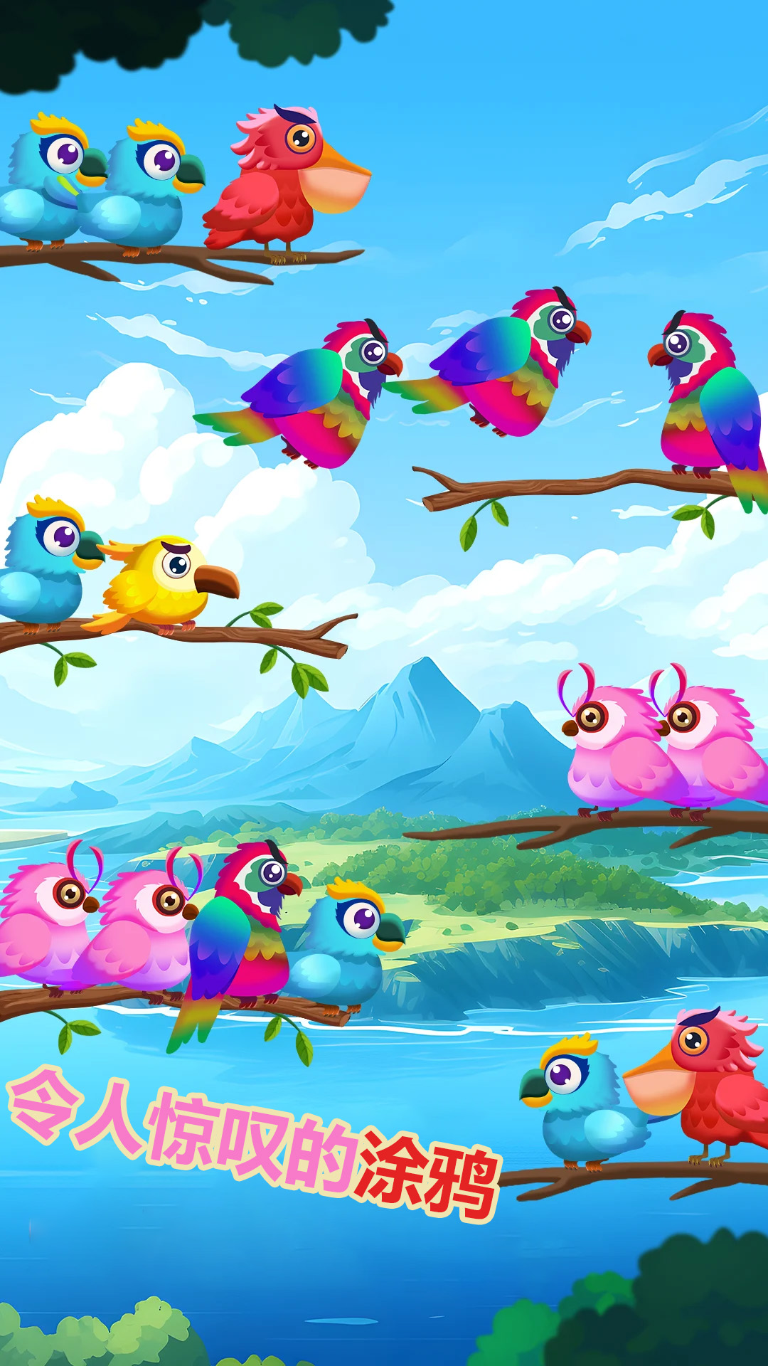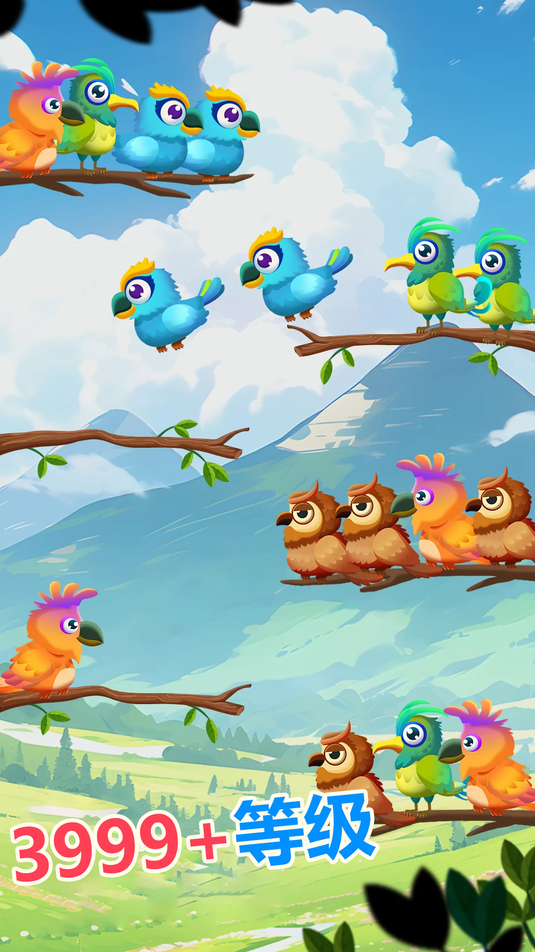 一款适合所有年龄段的有趣、令人上瘾和具有挑战性的游戏。你的主要任务是在树枝上对相同颜色的鸟进行分类。一旦你将所有相同颜色的鸟放在一个树枝上,它们就会飞走。该游戏包含一系列精心设计的彩色鸟类,并包含许多有用的功能。因此,这个新的更新版本的颜色分类游戏将为您带来放松的时间,同时训练您的大脑。