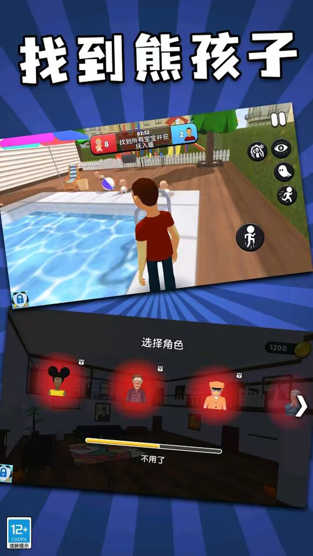 《宝宝模拟器》是一款趣味解压,刺激好玩的休闲游戏。玩家将参加令人兴奋的家庭游戏,全家躲猫猫。在游戏中可以扮演任一角色,宝宝,爷爷,奶奶,爸爸,妈妈,姐姐,叔叔。宝宝需要在限定时间内躲藏,避开所有大人;而其他大人则需要在限定时间内找到调皮的宝宝。快来享受一起游戏的乐趣吧!