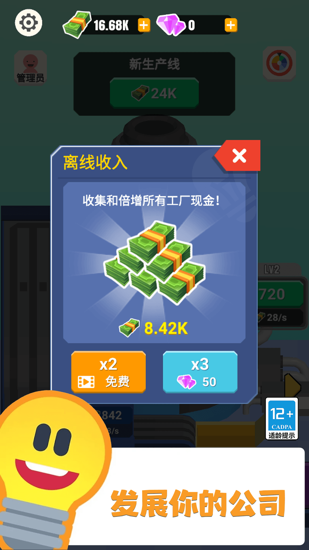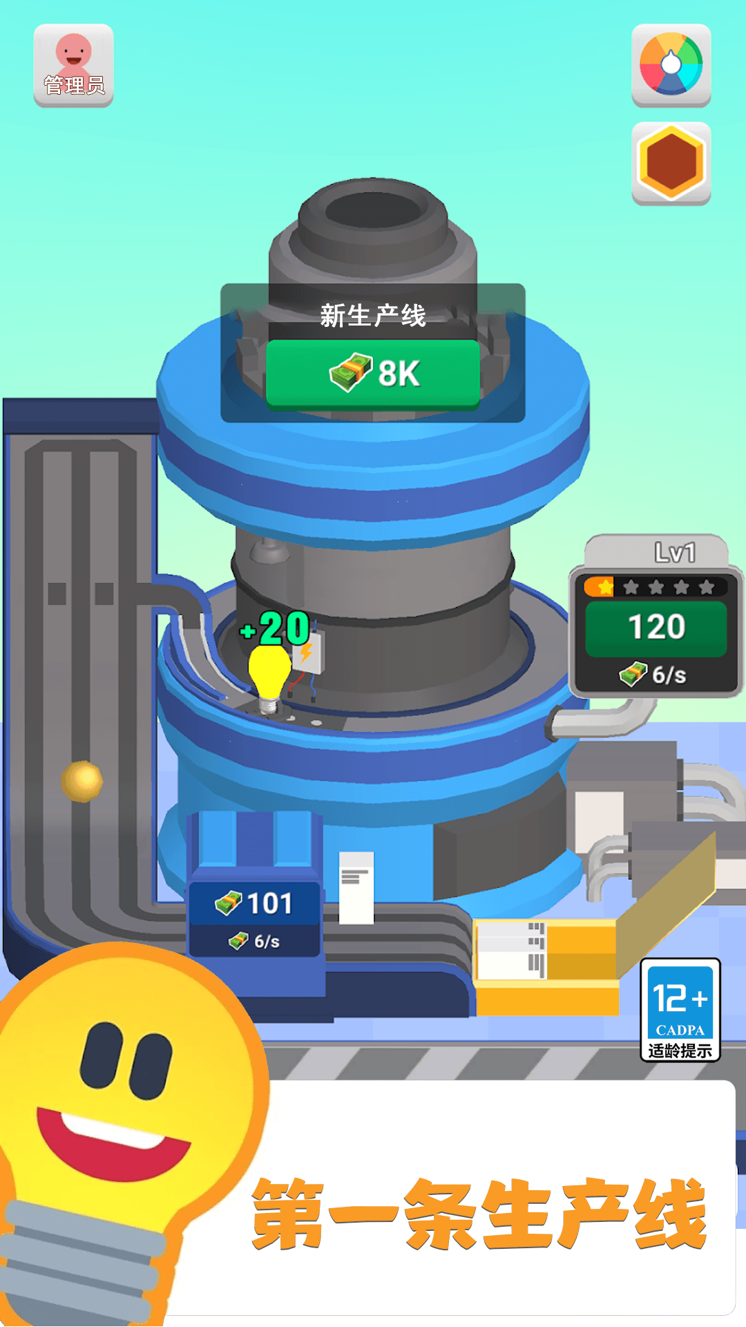 欢迎来到《灯泡工厂大亨》!在这个游戏中,你将扮演一位灯泡工厂老板,需要从生产线开始,经营你的灯泡工厂。