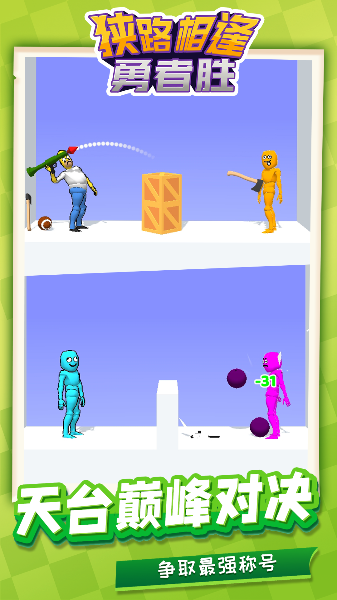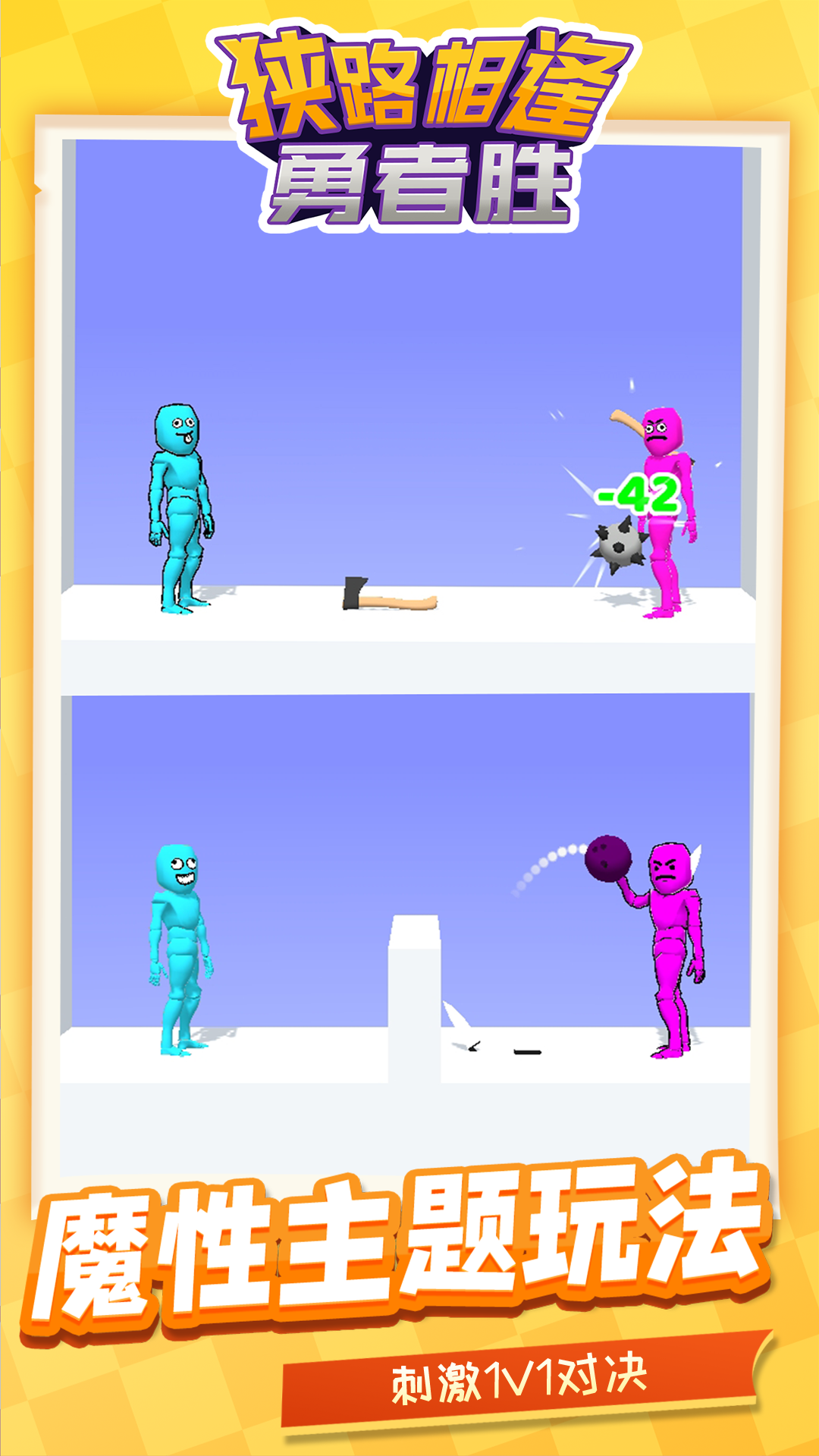 狭路相逢勇者胜是一款休闲类游戏,你需要控制角色开快速的消灭你的对手来获取游戏的胜利,关卡里有着各种道具,合理的运用轻松的战胜对手哦,游戏里超多精心设计的关卡等你挑战哦,越往后关卡的难度越高哦,喜欢的快来下载吧!