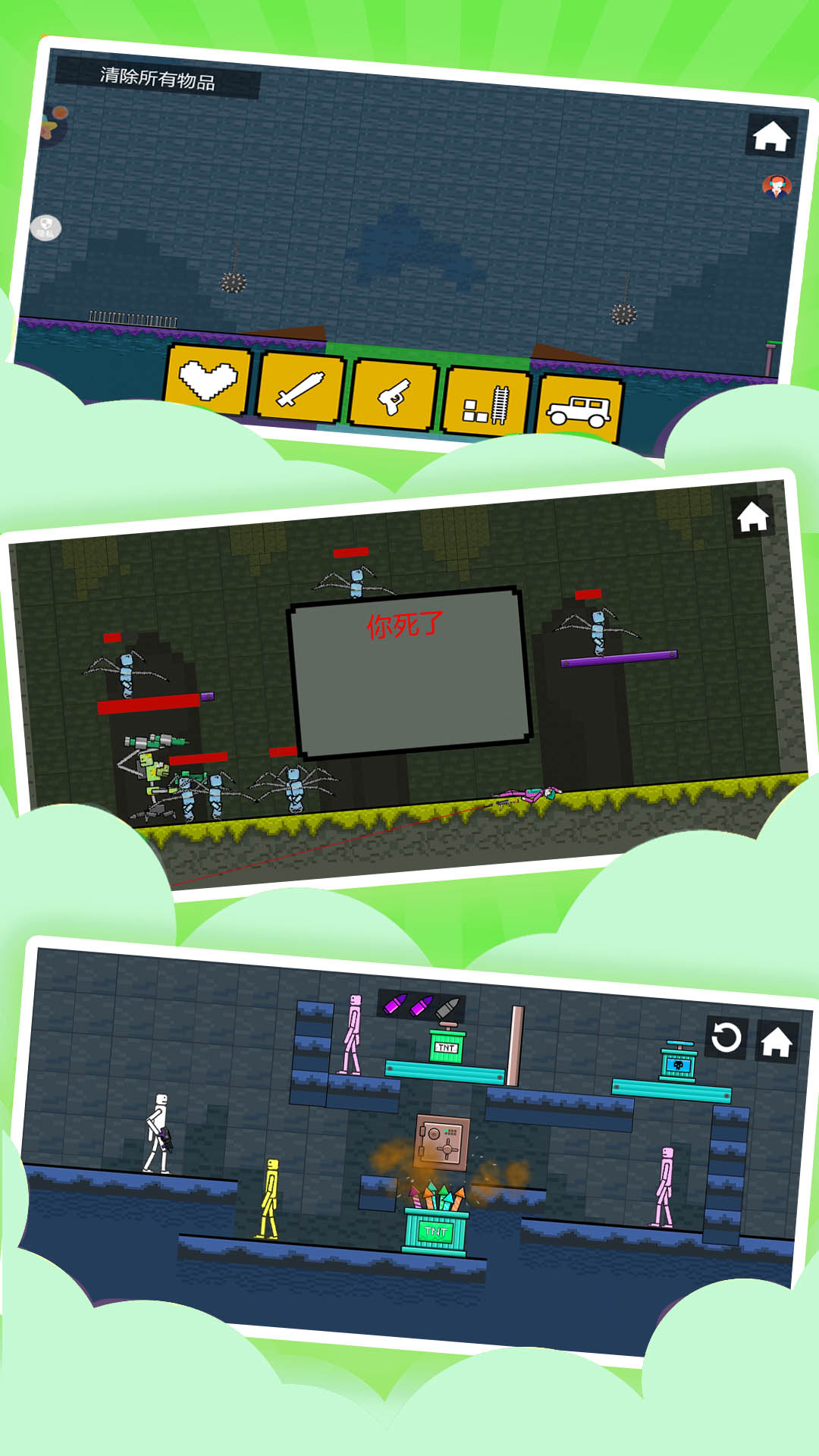 《全民改造师》是一款采用经典像素风打造的沙盒世界游戏,游戏中玩家们可以使用各种各样的道具和武器来攻击小人。撕裂,刺伤,射击,燃烧,中毒等等。游戏中每个关卡都有各种不同的敌人,合理使用不同的工具即可击败对手。感兴趣的小伙伴快来下载体验吧!