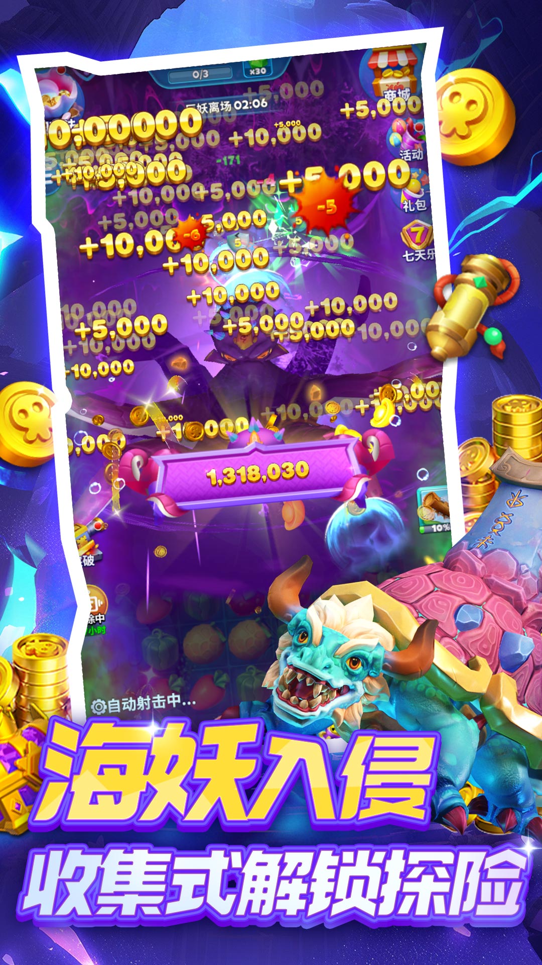 1.战斗场景焕新登场,感受身临其境般体验! 2.新增果园玩法,多种趣味机制狂撒福利! 3.新增黄金海妖抽奖,至尊赏金等你获取! 4.元素花园大升级,消除召唤助力战斗! 5.全新首领青龙、白虎、红孩儿、天狗携一众精英海妖悉数登场! 6.新增猎手“寒冰法师”,永冻领域强势来袭! 7.新增嘉年华活动,精英猎手“诸葛亮”盛大登场!(不定时开启) 8.部分杂项体验内容优化。