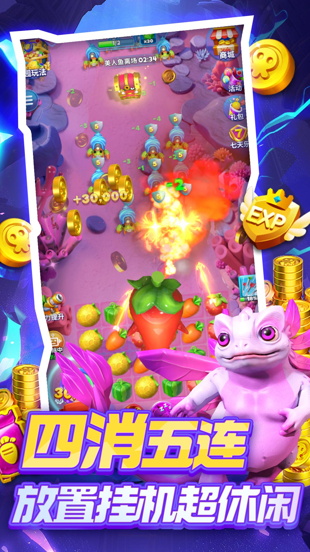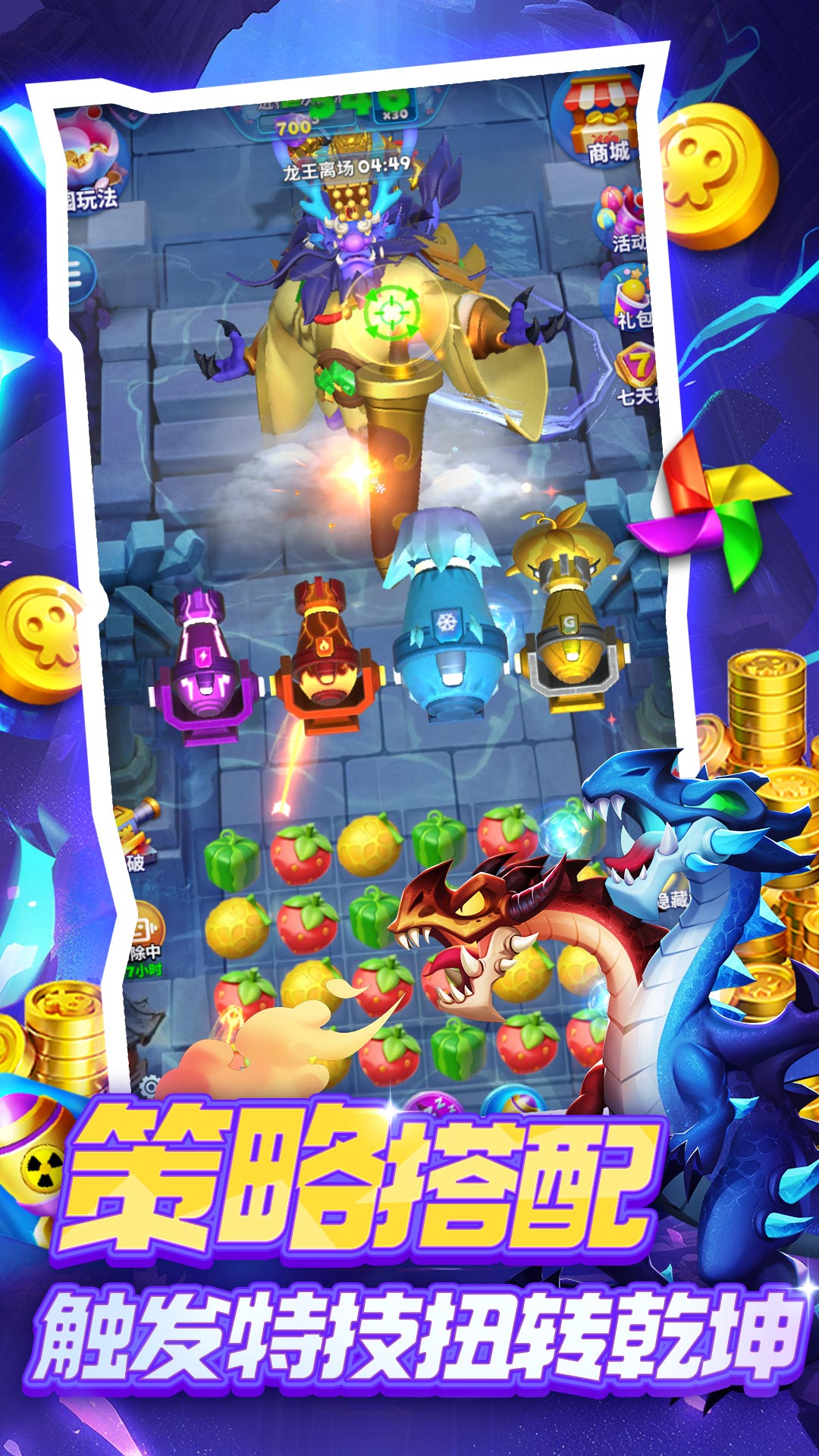 射击与消除双向奔赴!在同屏里一边开心消除水果,一边战斗击退海妖!