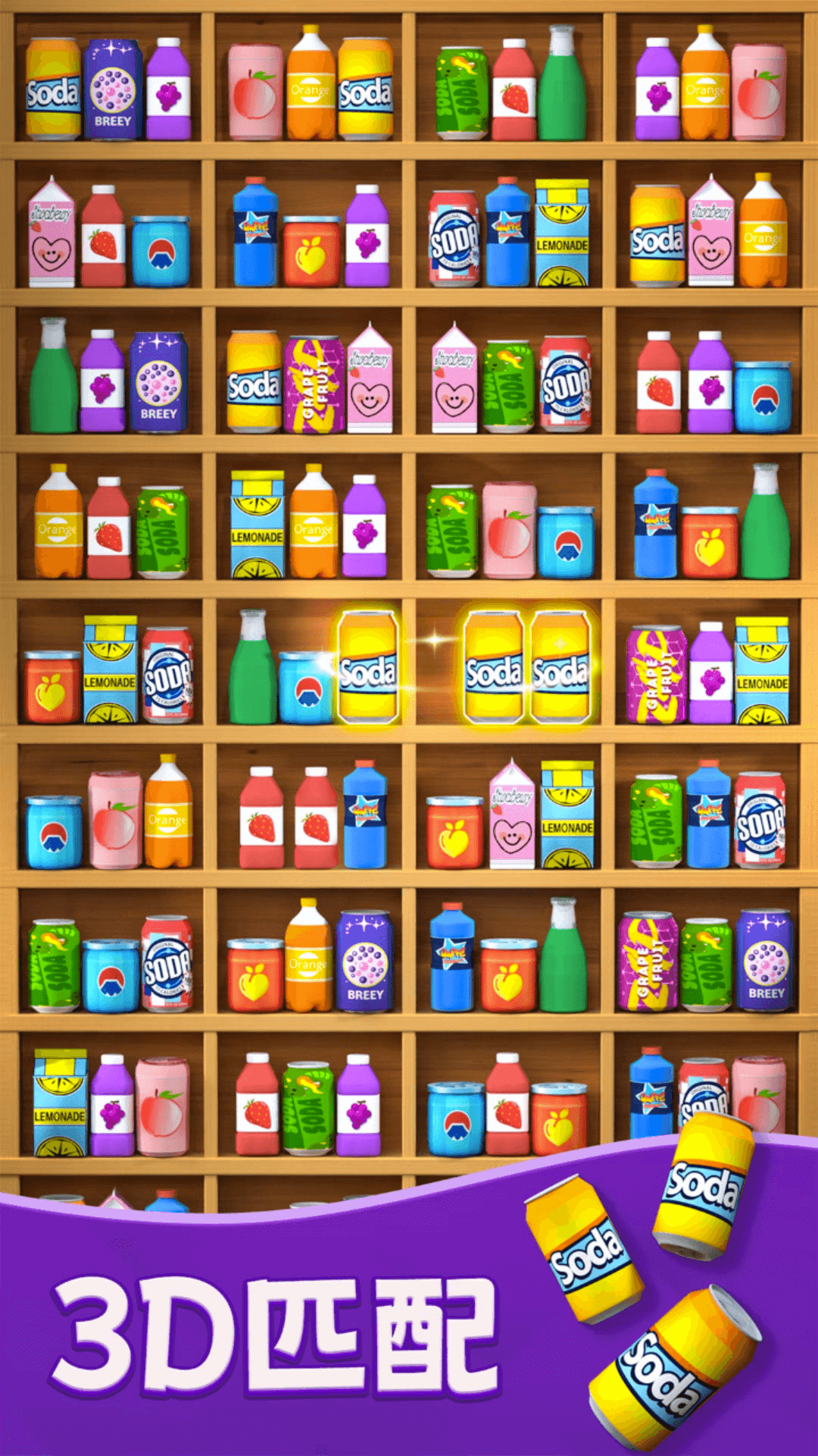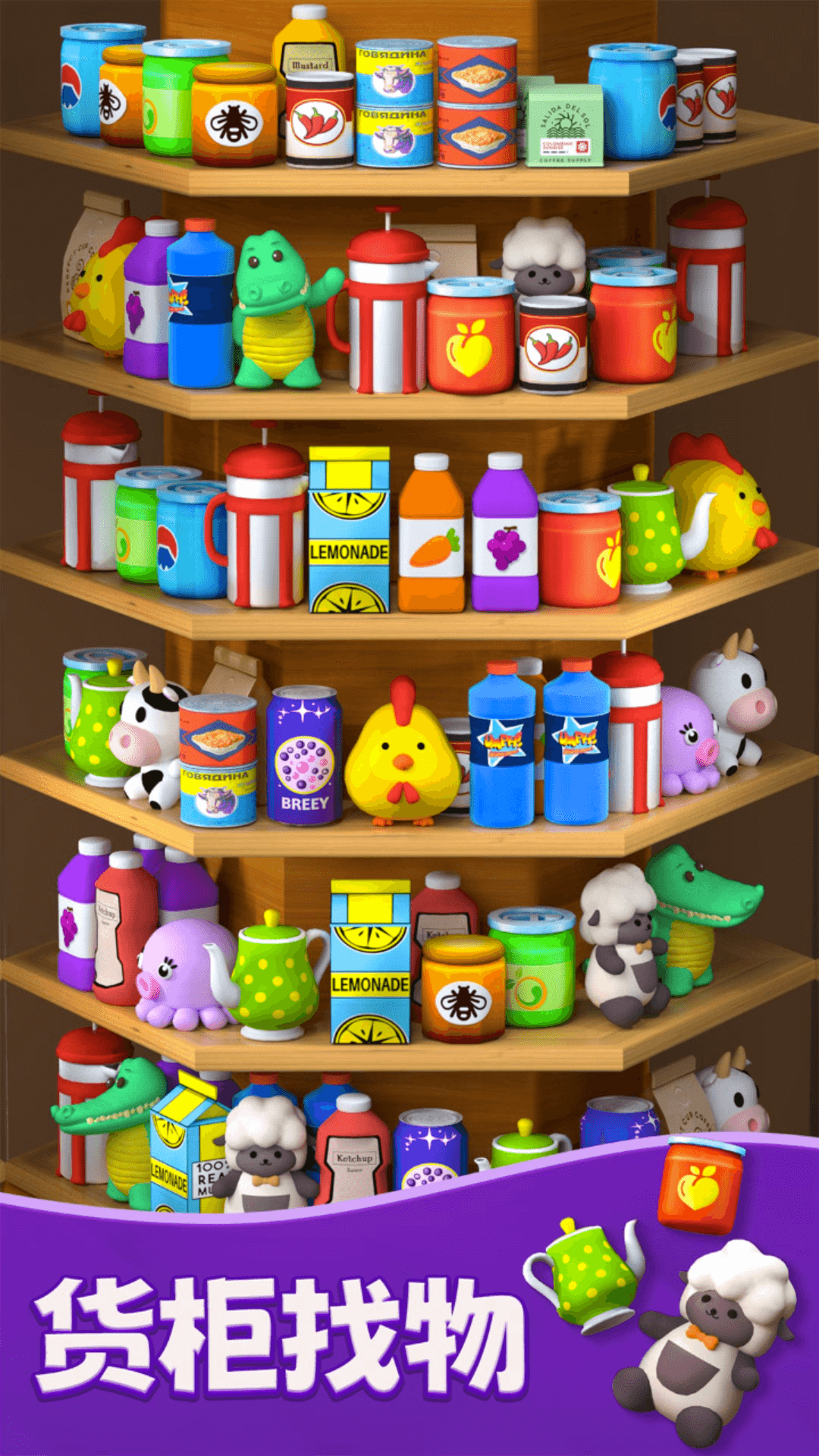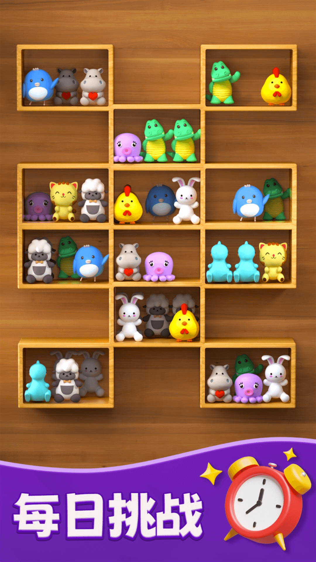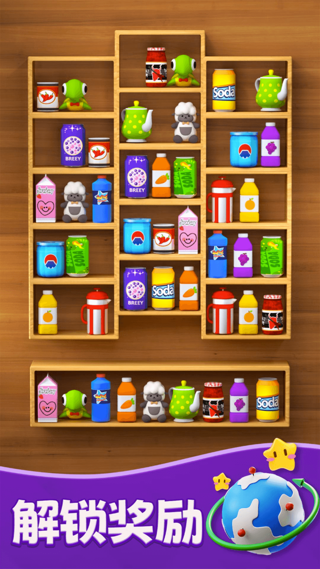 玩法简单:只需将相同图案移动到同一货架上即可消除