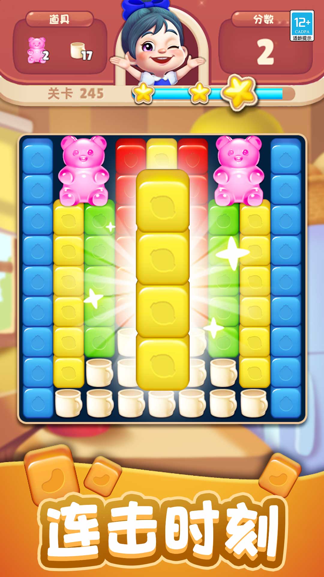 软糖连连消是一款益智消除类游戏,游戏里,你可点击同色类方块糖果完成消除任务,你也可以使用特殊糖果,让游戏进程更顺利通过。答应我,一定不要错过这款游戏,让我们一起在这个甜蜜的世界里,开启一场精彩的消除之旅吧!