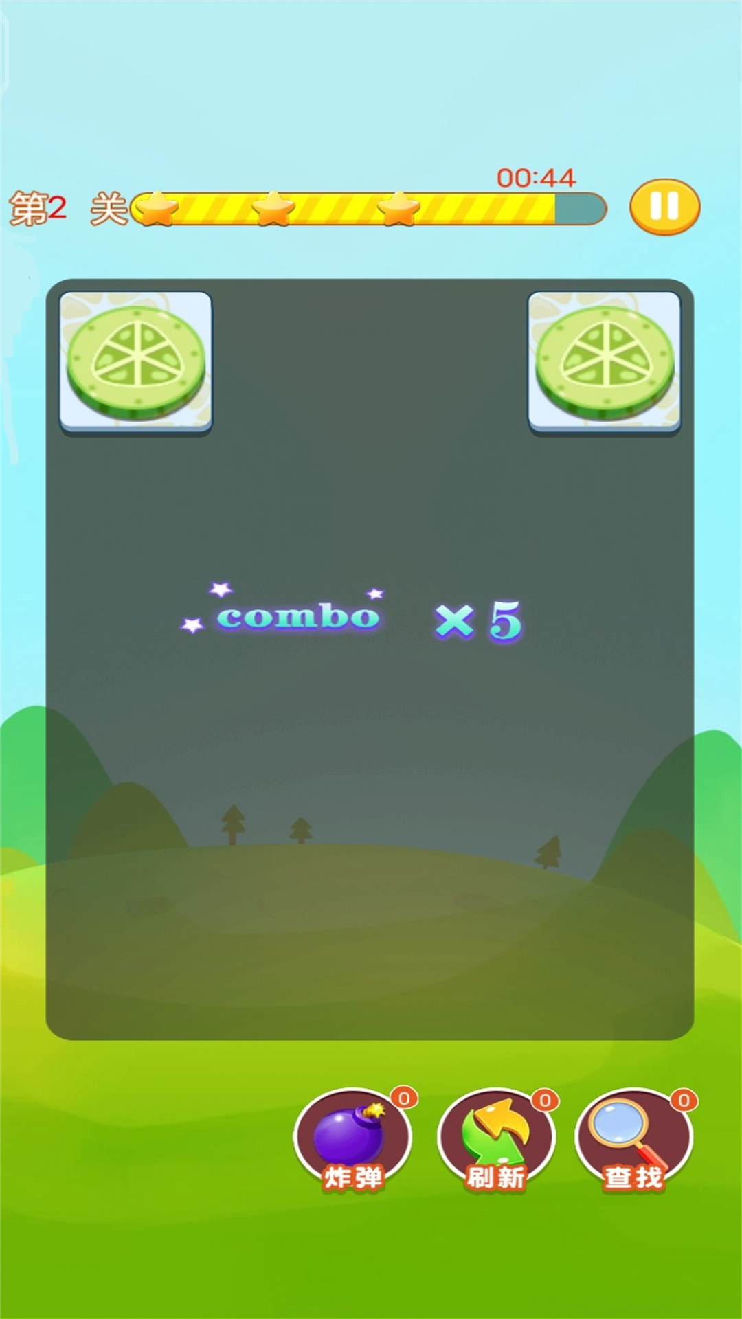 一款设计清新、画面精致、考验眼力和手速的《水果连连看》游戏。