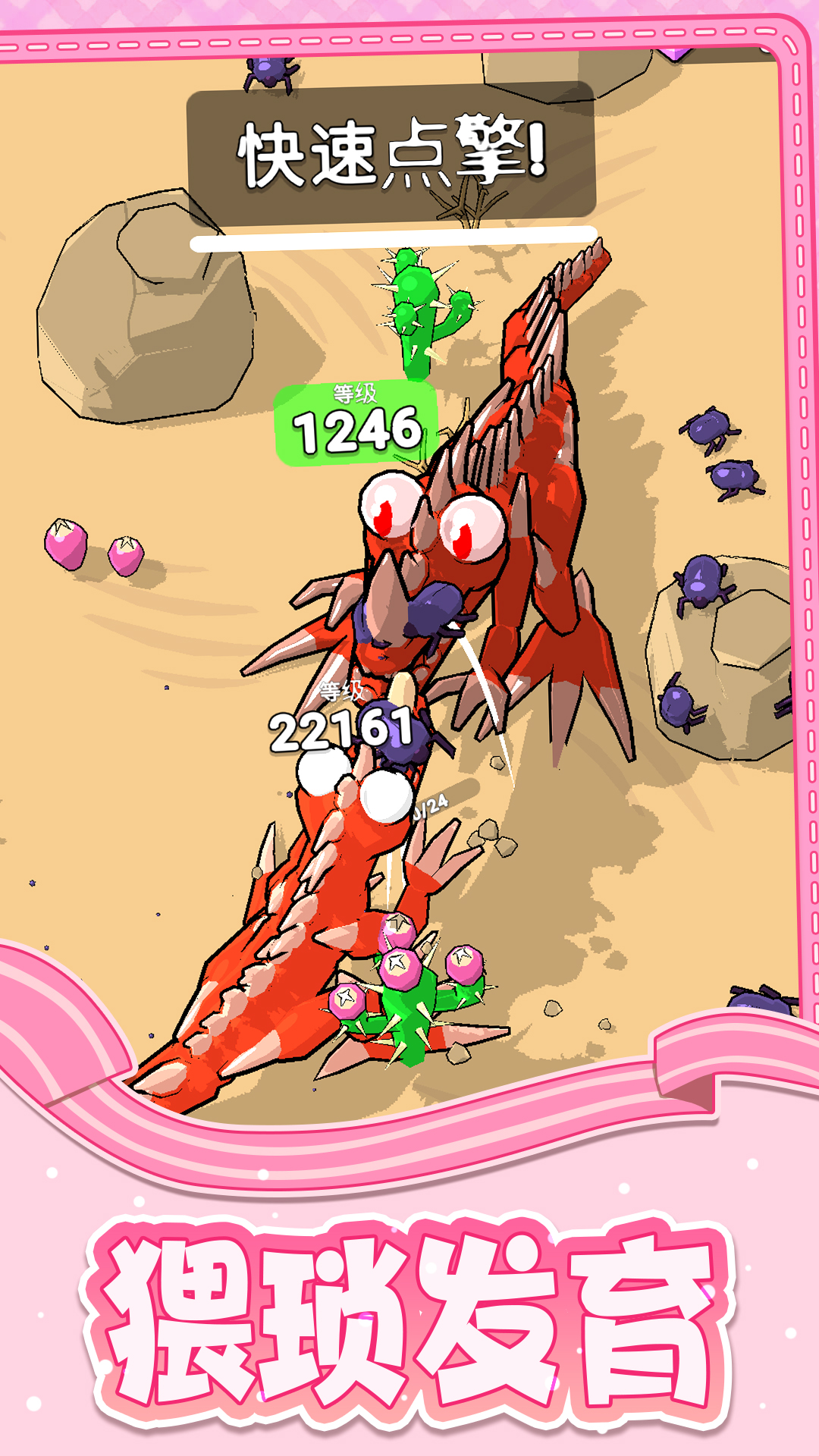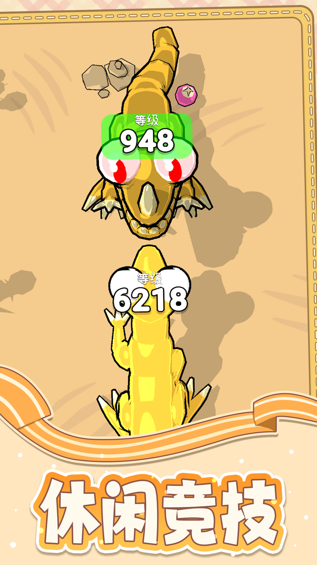 《恐龙大战》是一款卡通风格的吞噬合并类游戏。游戏画面十分亮丽,玩家在游戏里将操控一只小龙,通过吞噬其他小龙来实现升级,使自身成长为更强大的龙。当达到一定等级时,还能够吞噬其他生物。该游戏玩法轻松有趣,而且相当考验玩家手指操作的灵活性,玩家需要敏捷地躲避其他生物的吞噬。