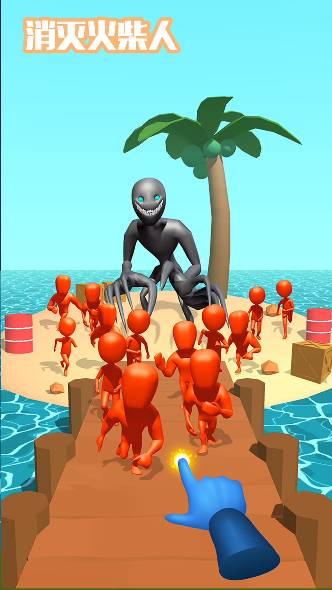 您需要控制魔法手指和周边物品消灭向你扑来的火柴人。