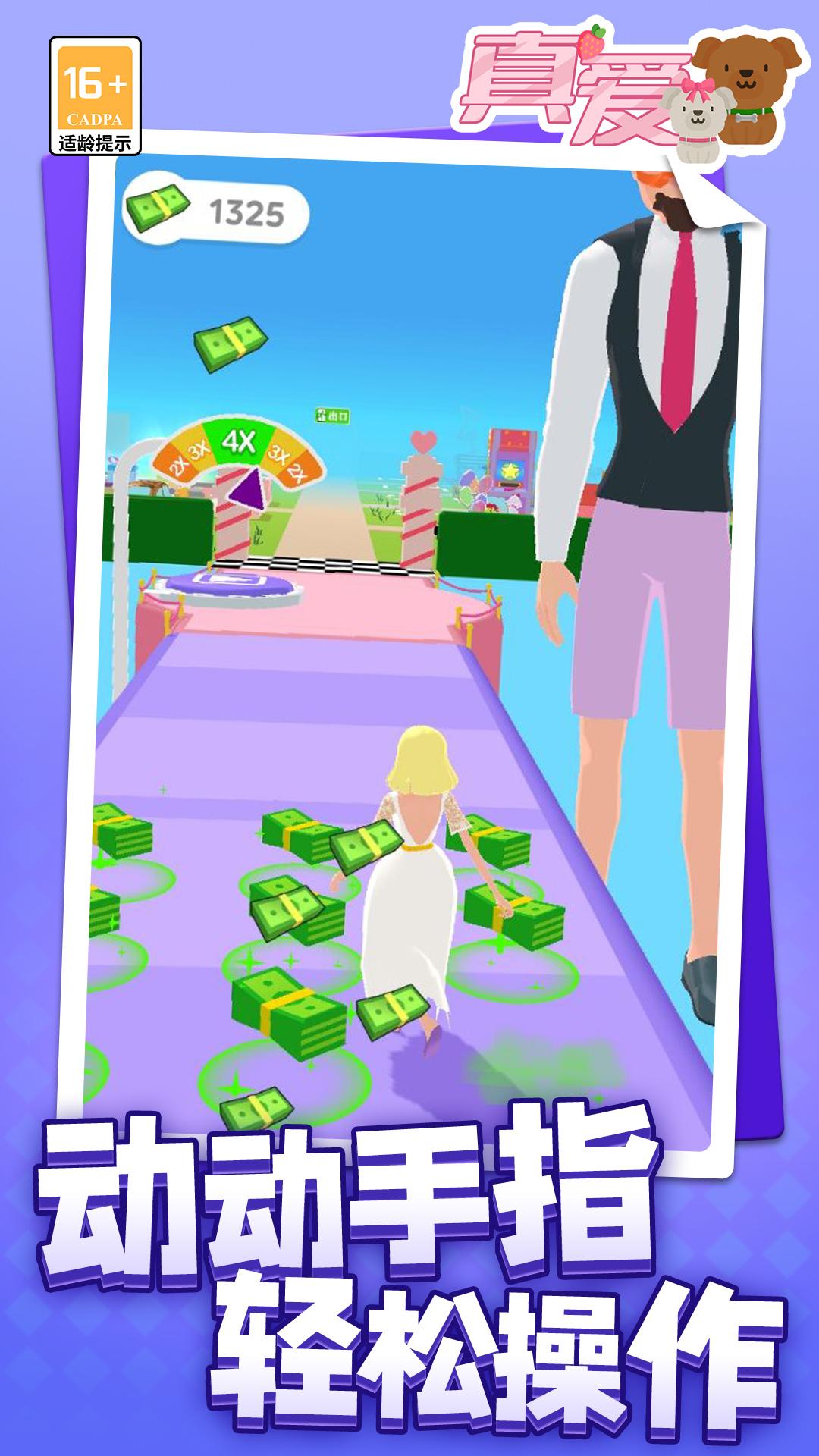 《真爱》是一款动作跑酷闯关类休闲游戏。游戏的每一个关卡都是在进行着婚礼的筹备,主人公需要在到达婚礼现场前致力于收集着婚礼上使用的各种道具。快来一起筹备婚礼吧,与真爱携手共创美好的未来!