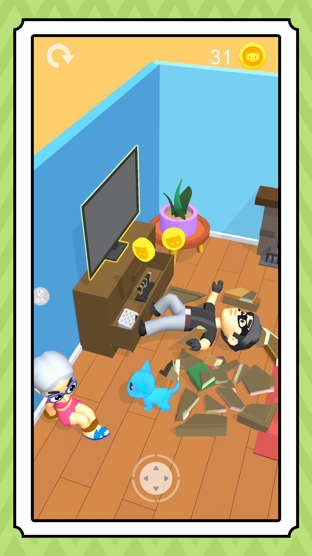 一款解谜闯关类休闲游戏。 万能的宠物小精灵猫猫,痛击罪犯,解救无辜被绑架的主人。 玩家扮演一只可爱的精灵猫猫,通过和场景内物品结合的方式,操纵物件,痛击匪徒,解救被绑匪捆住的主人。勇敢猫猫,不怕困难,开动你的脑筋,用又快又安全的方式,救救你的主人吧。