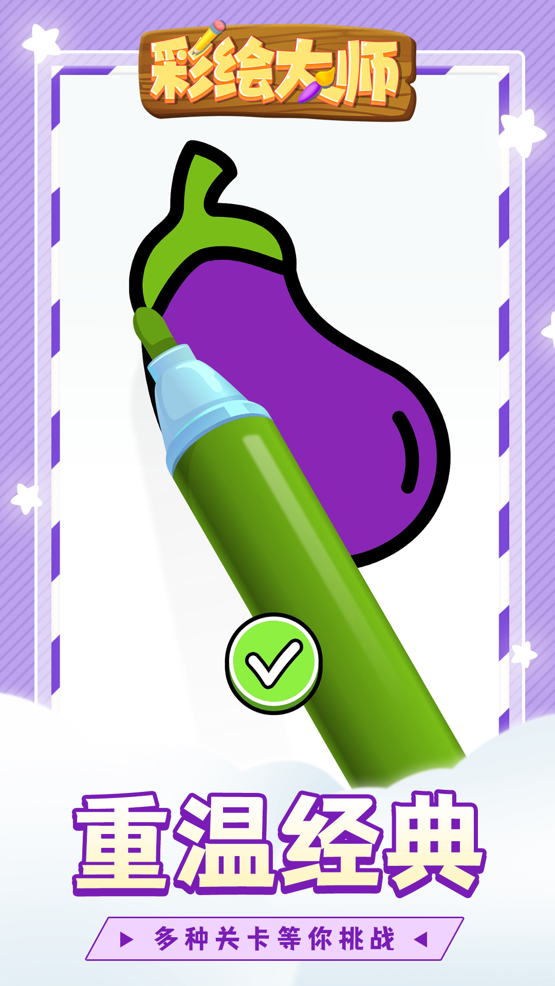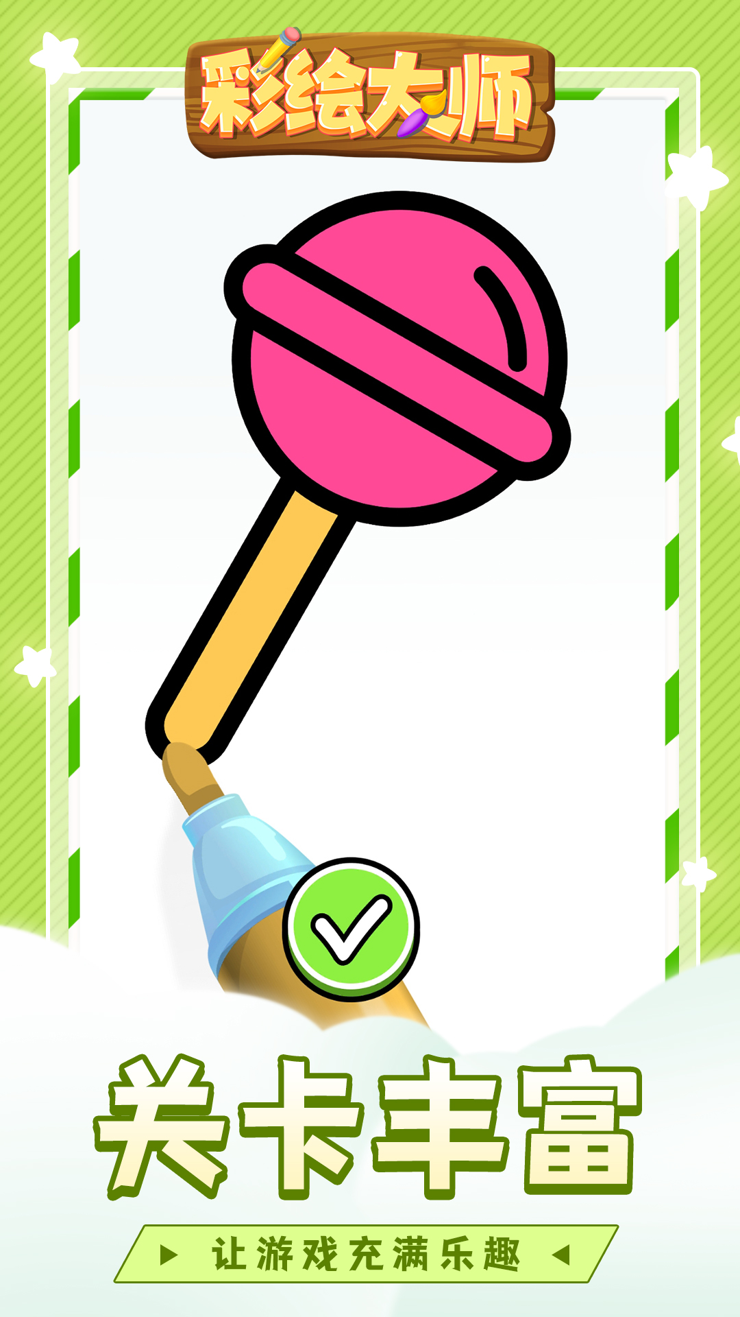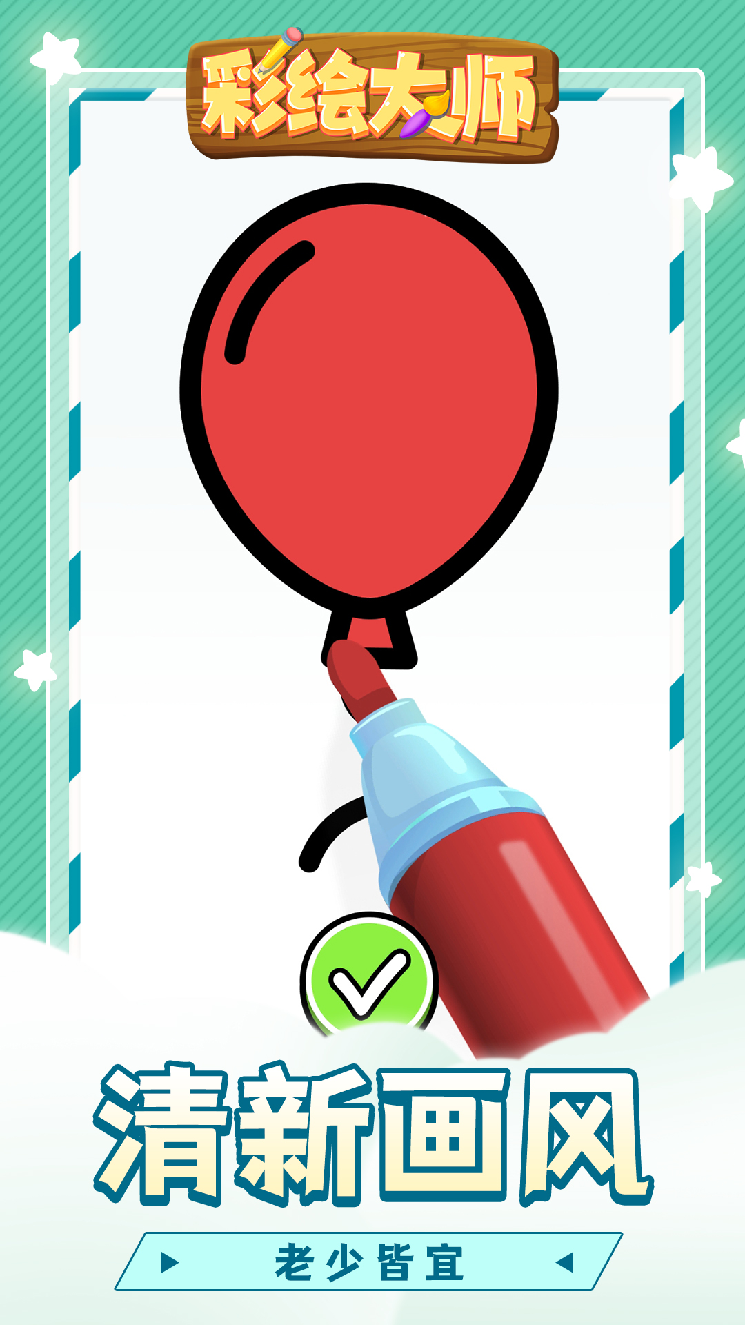 《彩绘大师》需要玩家在关卡内创造完美的卡通图片,按照自己的喜好进行上色,磨练玩家的技艺,舒缓玩家的压力。游戏提供了数百种图案供你绘制,更有动物、水果、蔬菜、玩具、自然科学等诸多品种的图案供你选择,图片线条简单,色彩艳丽,造型卡通,吸引着各种玩家。游戏内的美术采用了2D平面卡通画风,酷似简笔画的风格,丰富多样的美丽图片通过简单的线条呈现。