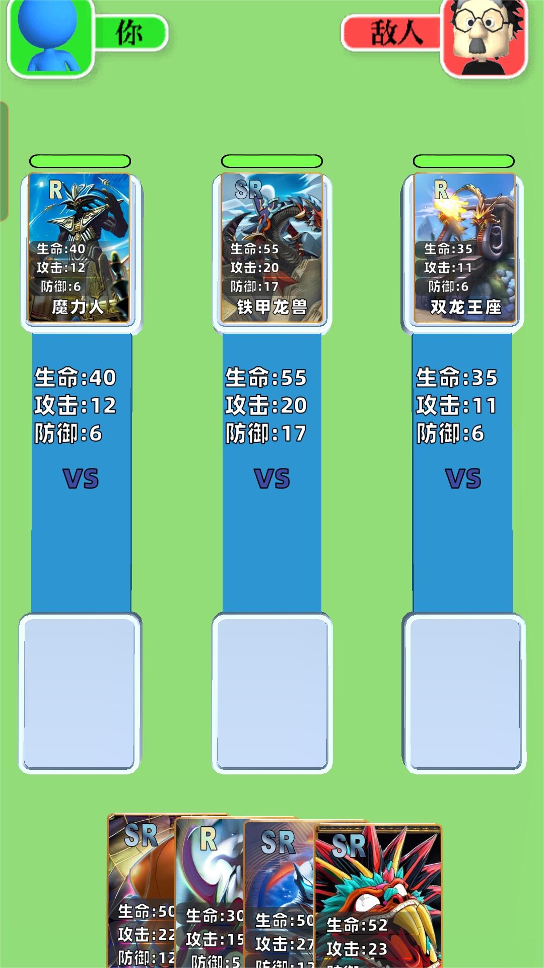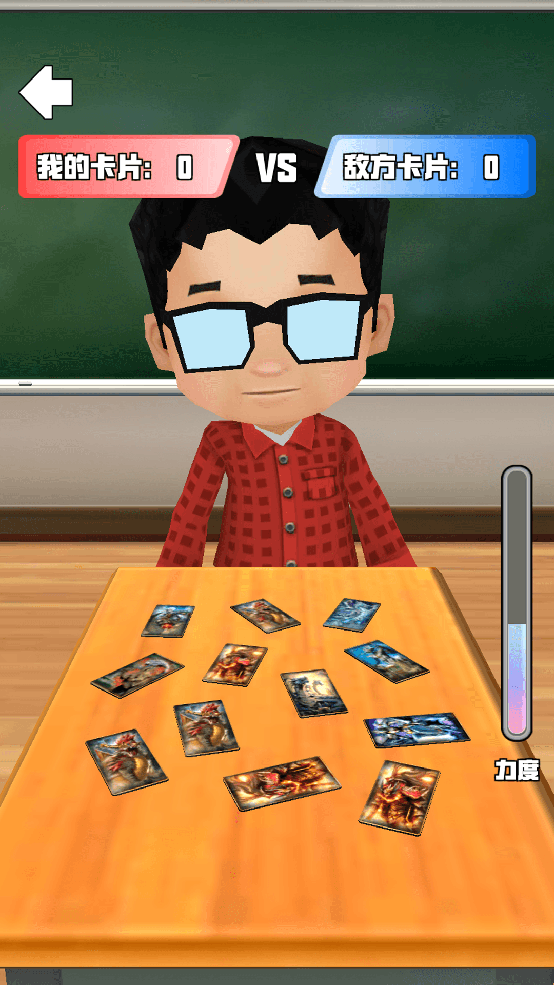一款卡牌收集类游戏,玩家将与各个同学进行拍卡片对决,掌控力度成功将卡片拍翻面可以获得积分,积分更多的一方获胜并获得卡片和金币,金币还能用来开宝箱和兑换稀有卡牌,快开始你的卡片收集之旅吧。