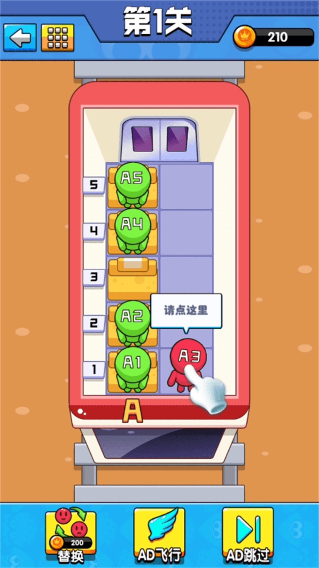 一款休闲类小游戏,游戏的核心玩法为让乘客都坐回指定座位,玩家是一名高铁的乘务员,工作是让每个乘客都坐回自己的座位,开始工作吧!点击屏幕控制角色移动,让角色都移动到指定座位完成关卡。更有超强的道具助力,快来挑战吧!
