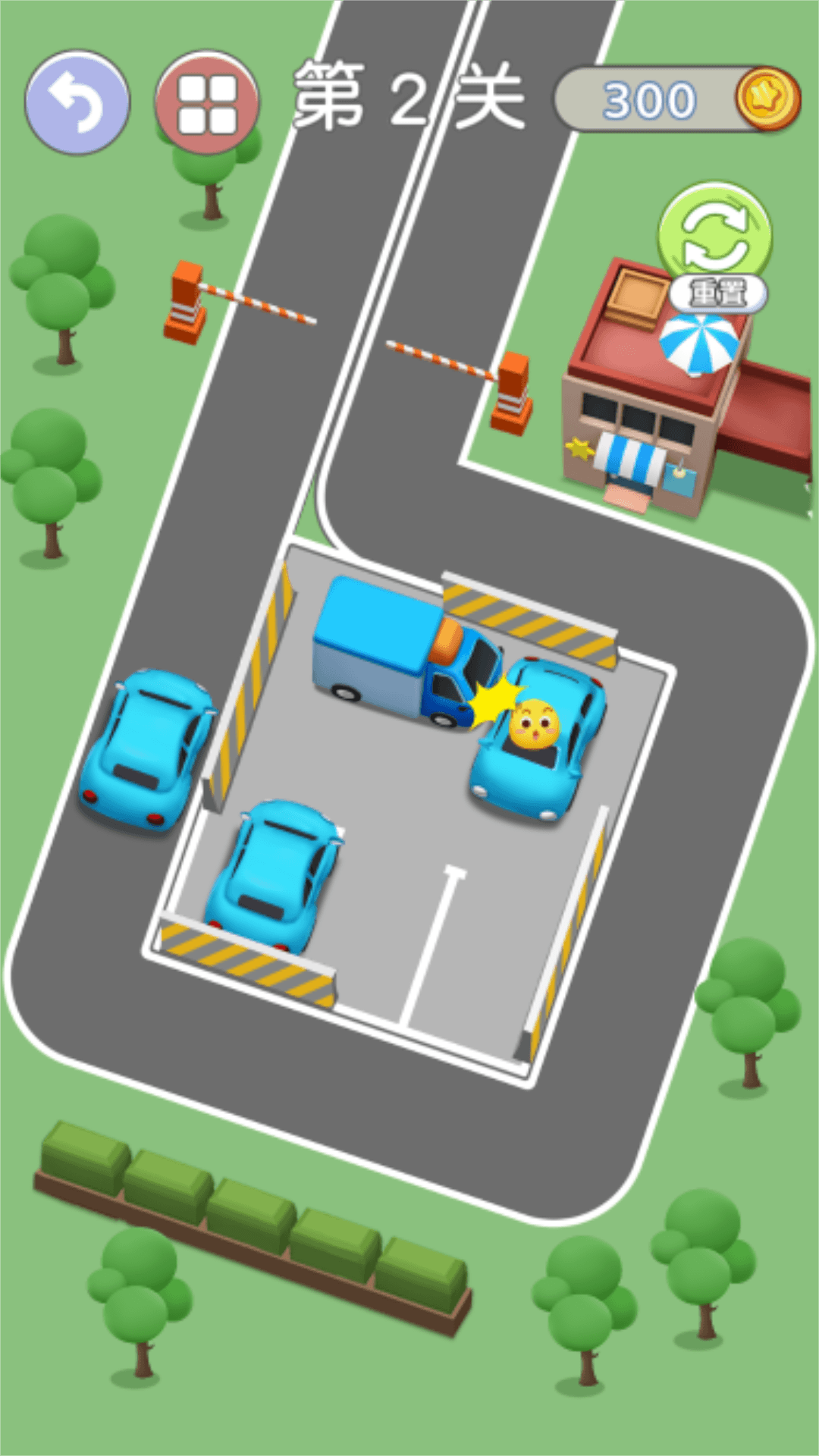 一款休闲类小游戏,游戏的核心玩法为控制汽车的移动,进行驶离停车场,该版本无世界观背景设置。游戏主要玩法为点击屏幕控制汽车驶离的顺序,让所有的汽车都安全有序的驶离停车场,看你能用多快的时间完成关卡,快来挑战吧!